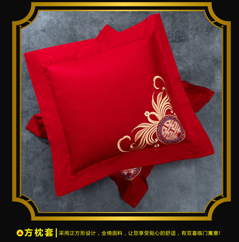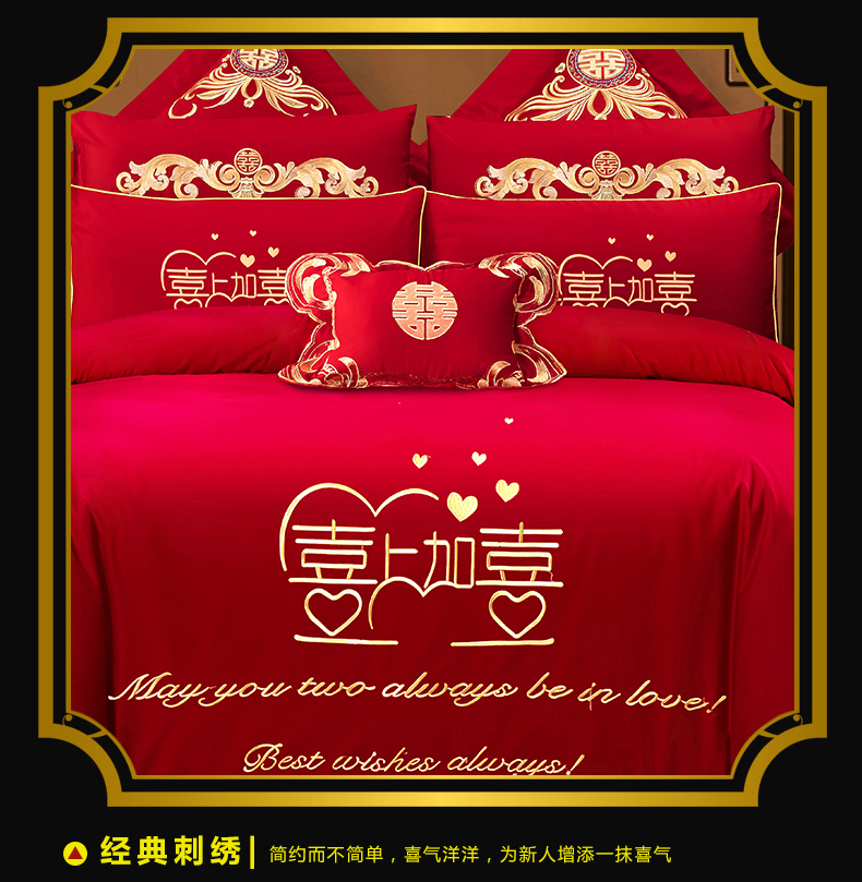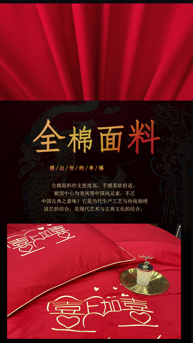 当前位置: 91家纺网 > 商品网购 > 床品套件 > 四件套 > 婚庆四件套 > 慕她家纺 2026年全棉纯棉婚庆四件套大红色刺绣结床上用品(床盖款加40) 喜上加喜