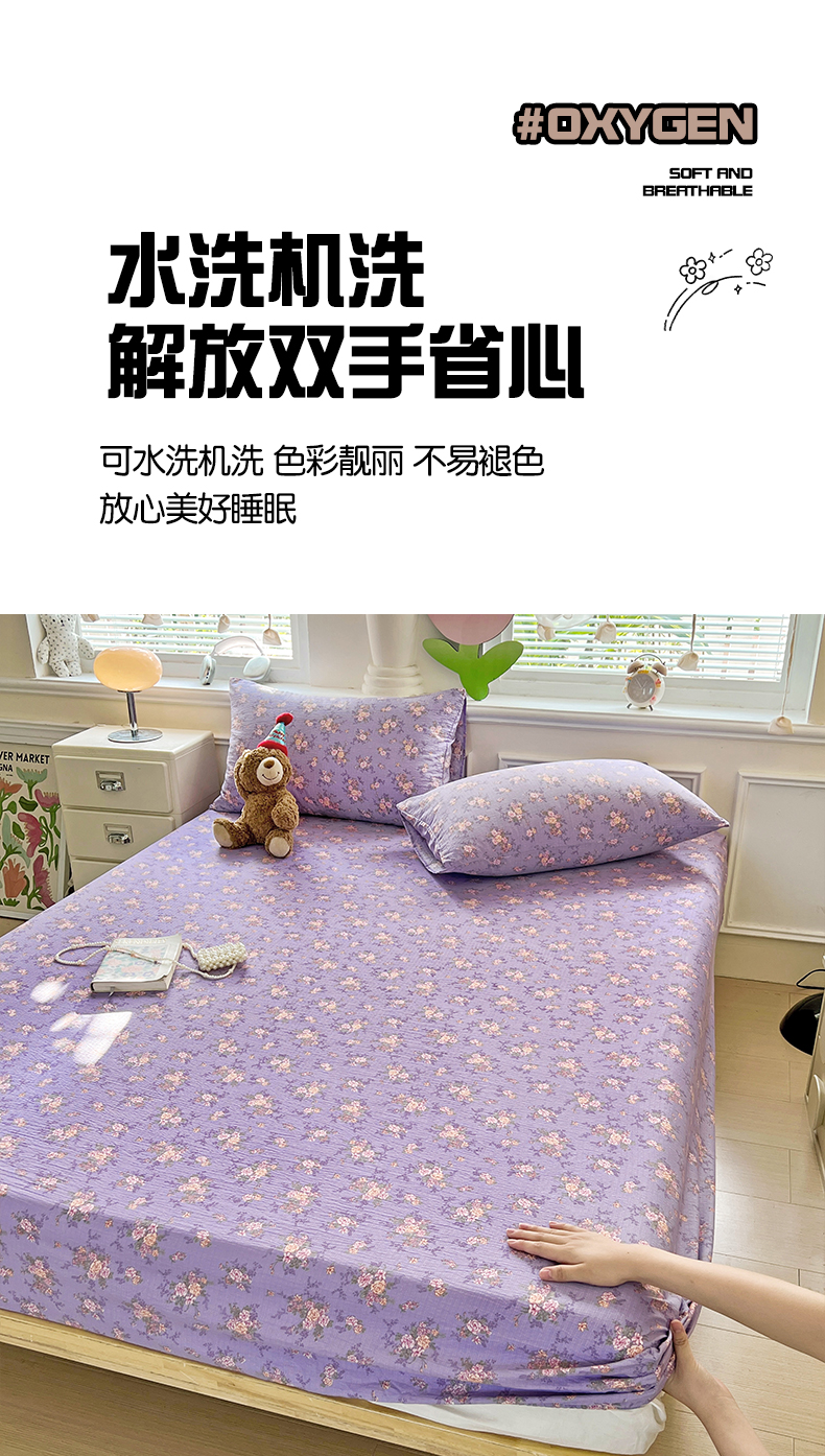 • 91家纺网 家纺一手货源 找家纺 优选良品 2025新款ins小清新木棉双层纱印花床笠床垫保护罩枕套三件套 花汀