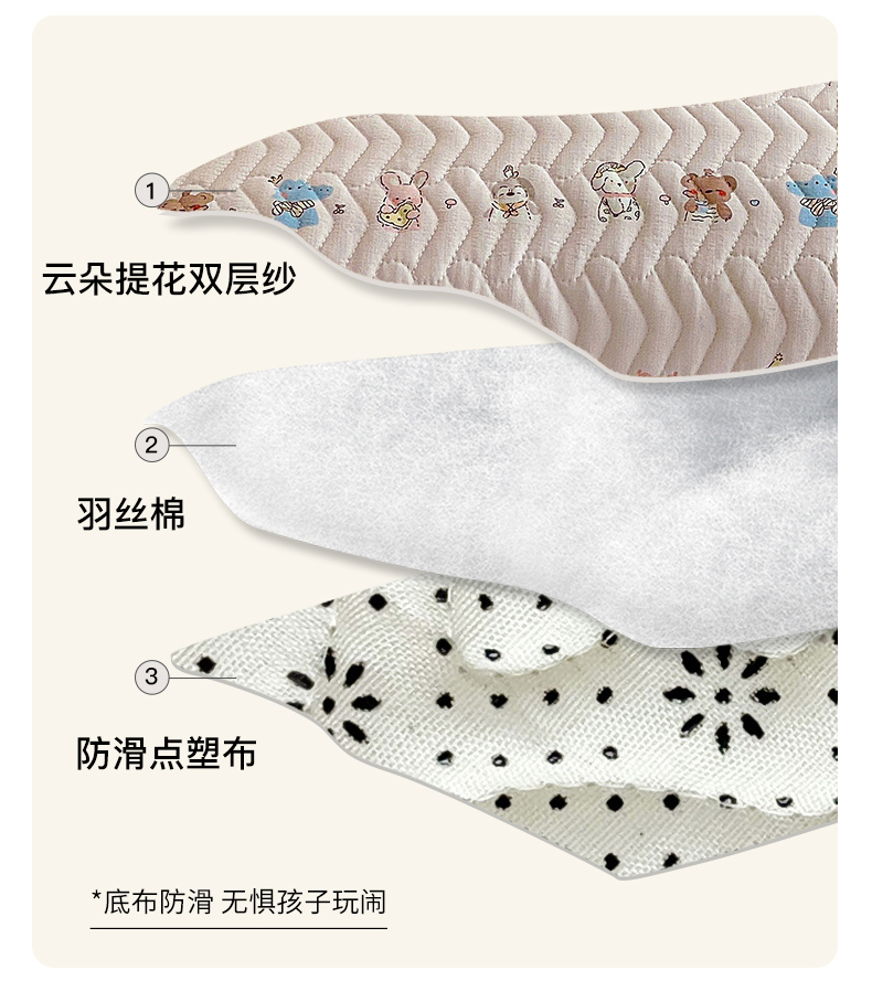 商品名称:纽缦家纺 2026春夏新款云感提花双层纱夹棉床垫 动物游园