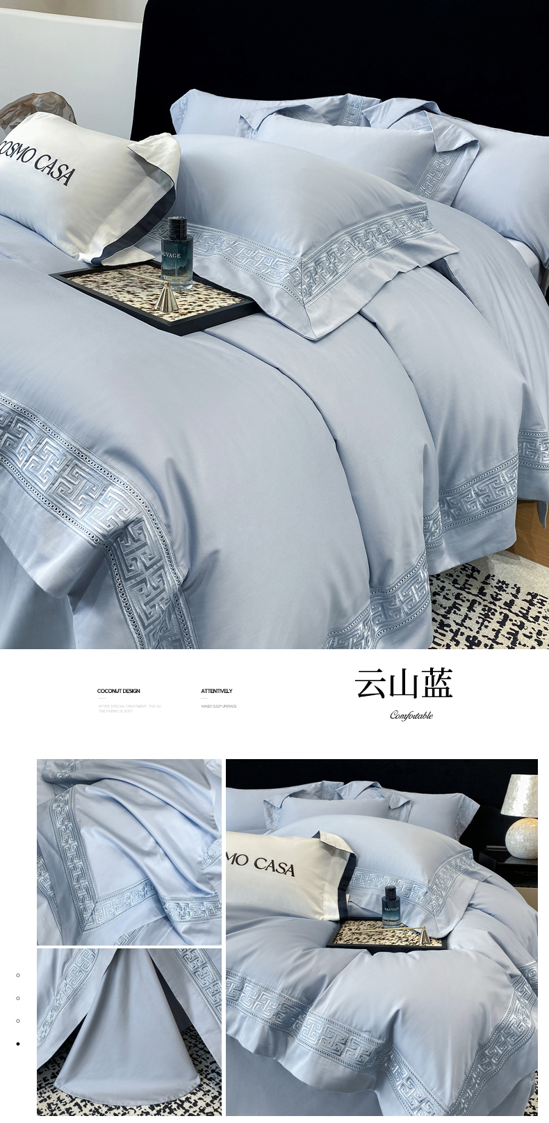 (总)星蕴家纺 2025新款新疆贡缎全棉刺绣四件套-黛尔【高档礼盒包装】,繁星蓝,白拼玉,浅香槟,雅灰粉