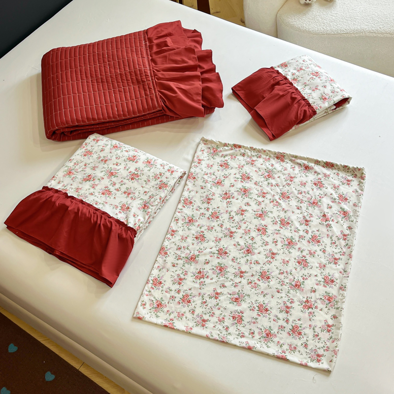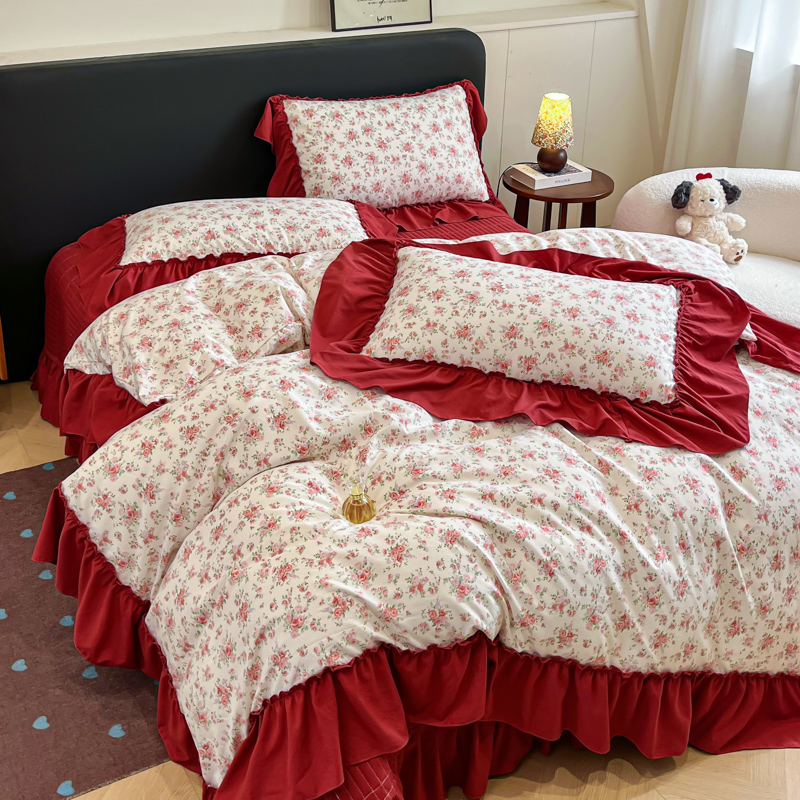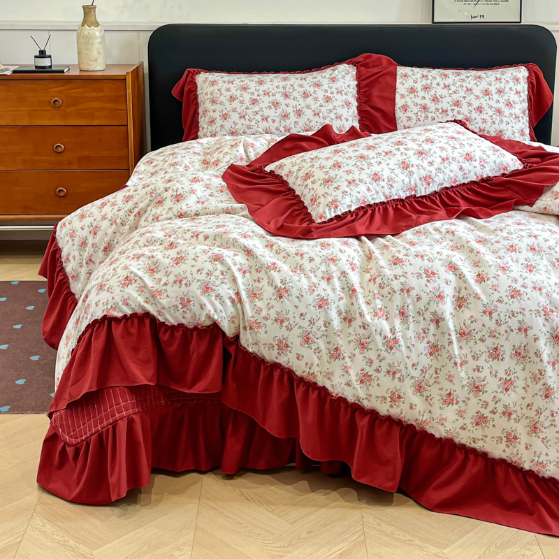 梦可莱家居 2026春夏新品法式复古大花边清新复古卡通系列床盖四件套 梨花落