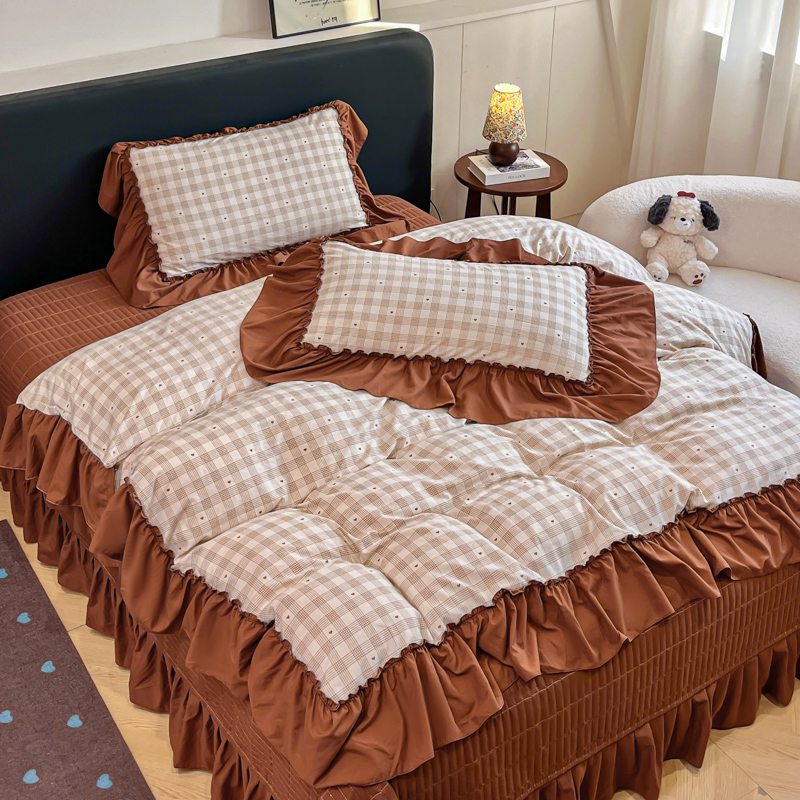梦可莱家居 2026春夏新品法式复古大花边清新复古卡通系列床盖四件套 田心格