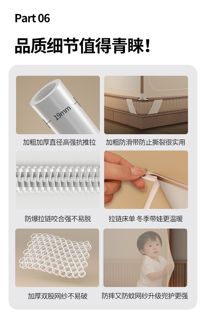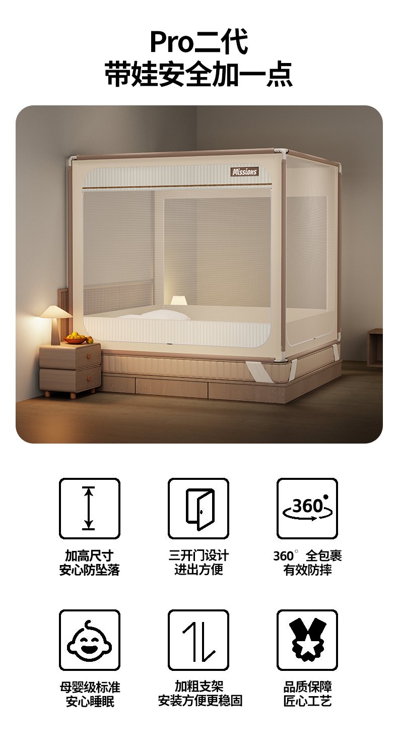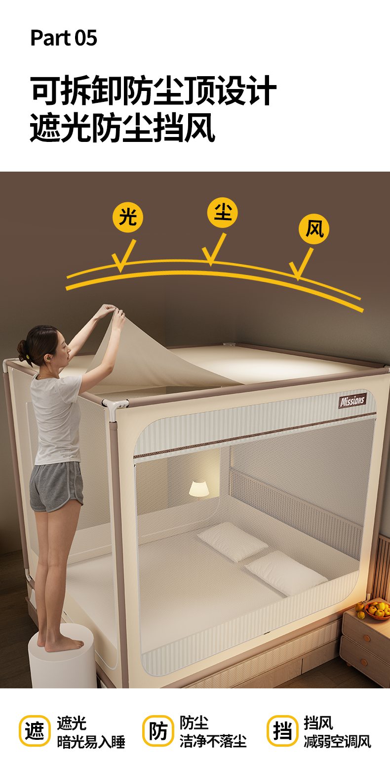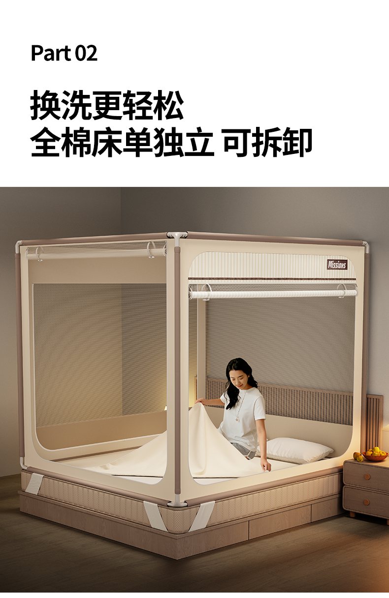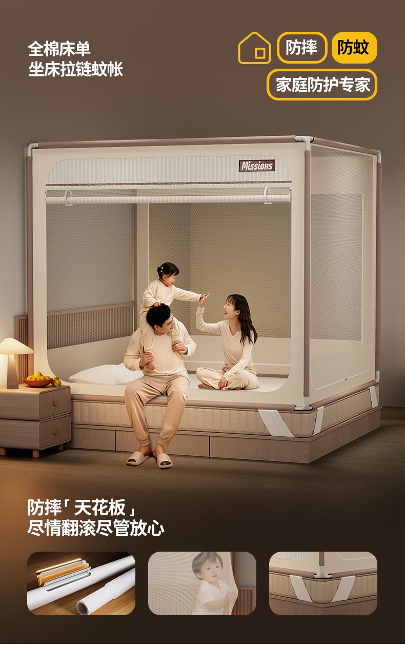 当前位置: 91家纺网 > 商品网购 > 床上用品 > 蚊帐 > 坐床式蚊帐 > 星际优品 2026新款坐床蚊帐可拆卸全棉底加厚双股双丝防猫抓帐纱-格调款 格调-米色