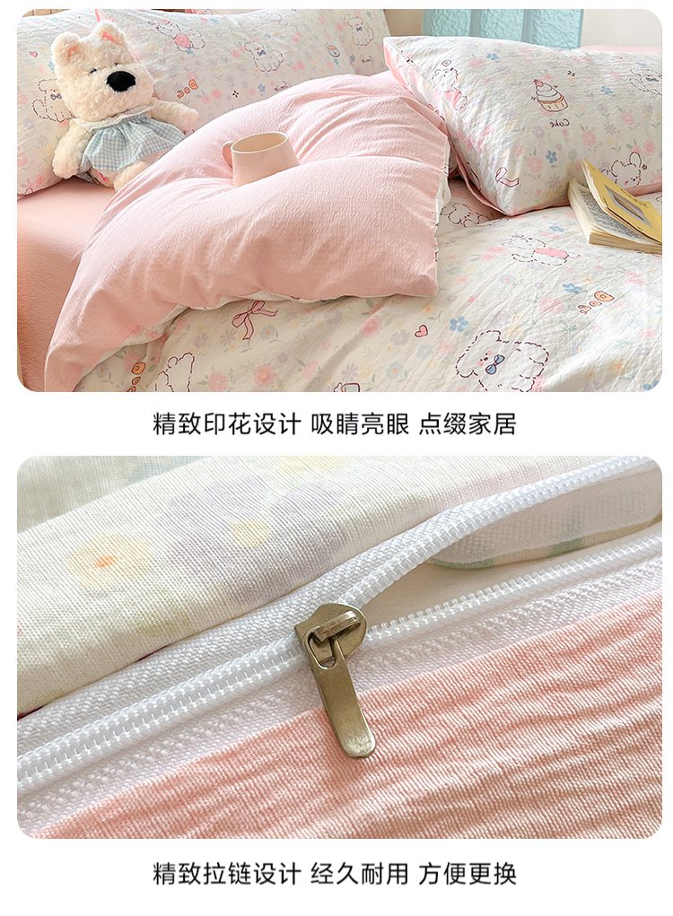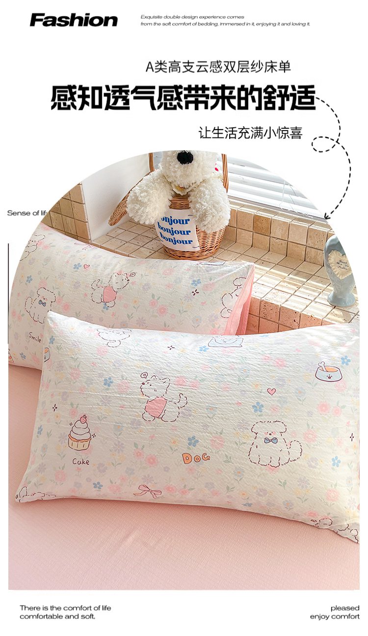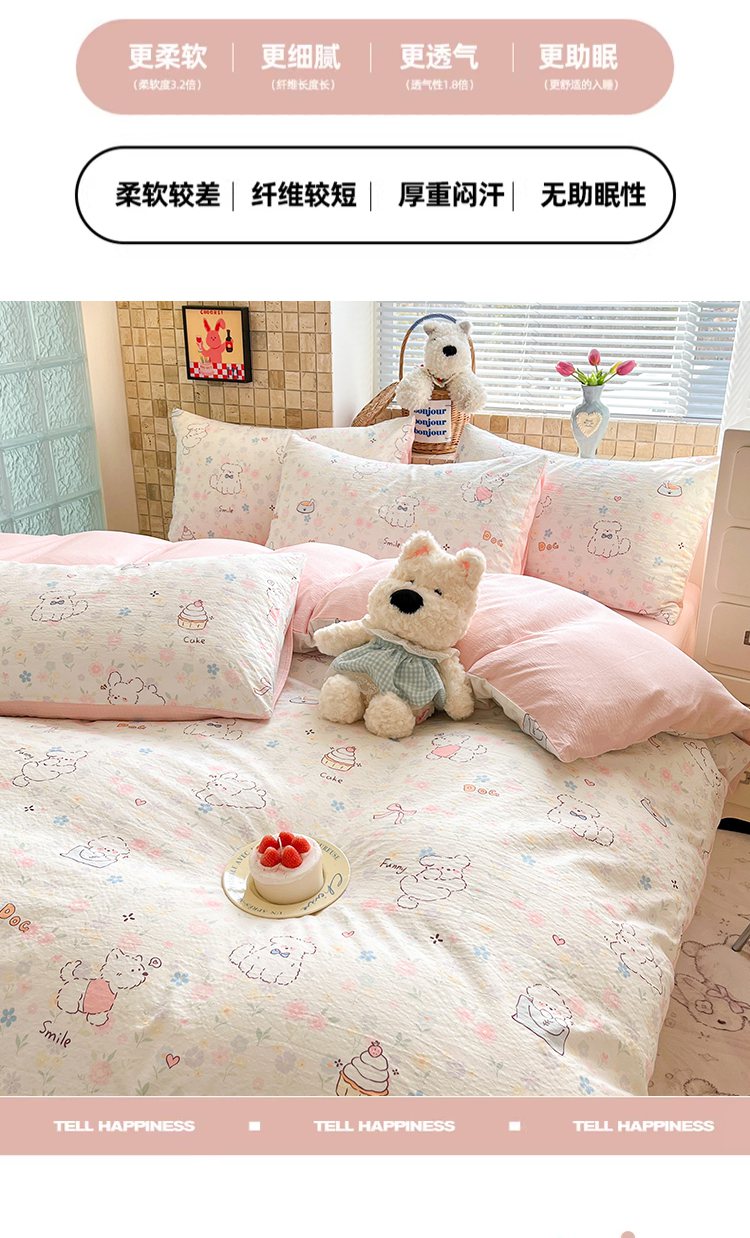 当前位置: 91家纺网 > 商品网购 > 床品套件 > 四件套 > 双层纱四件套 > 川悦生活 2026新款云感双层纱木棉四件套 腊肠甜心