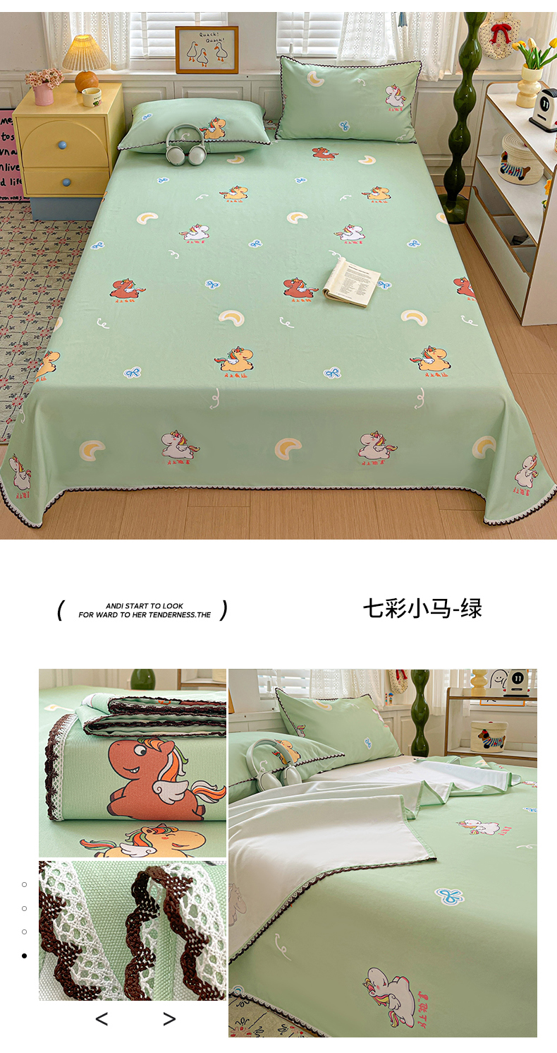 • 91家纺网 家纺一手货源 找家纺 纽缦家纺 2026新款舒适透气细沙卡通印花花边老粗布床单凉席席子 清香莓果-绿