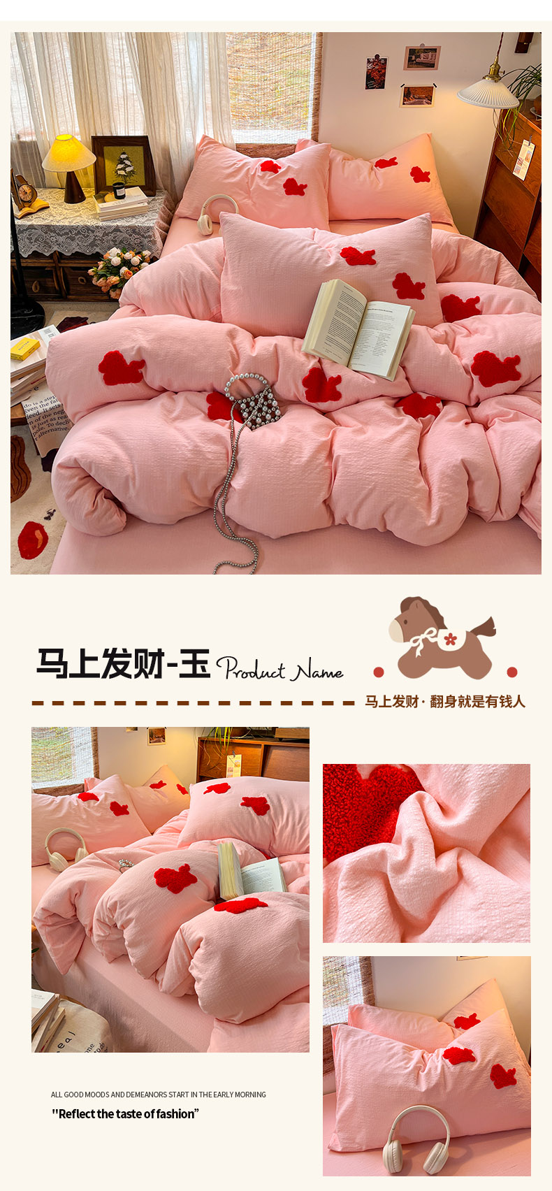 当前位置: 91家纺网 > 商品网购 > 床品套件 > 四件套 > 双层纱四件套 > 花伞家居 2026新款小马毛巾绣双层纱四件套含买家秀 马上发财-风信紫