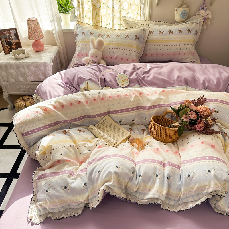 (总)睡美美家纺 2026新款A类古法水洗棉法式花边四件套,彩虹小马,春日絮语,春野,粉豹纹,粉雾蔷薇,粉漾,格纹小象,海盐奶酪,花千朵,花田兔,灰棠,剪秋,乐町小马,美式,梦华录,梦幻格趣,梦幻灰,梦露,木马乐园,奶萌喵咖,南瓜童话,俏皮狗,青花瓷,赛琳娜,森屿,疏影,水晶葡萄,甜粉小窝,甜心萌宠,小黄花,小幸运-蓝,絮语,鱼多多