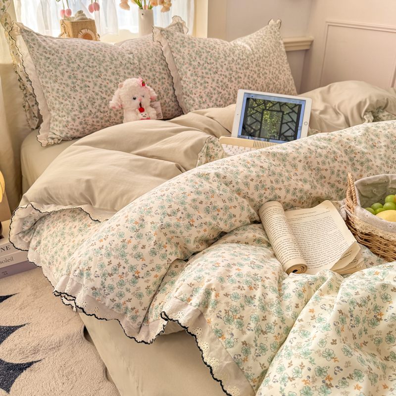商品名称:睡美美家纺 2026新款A类古法水洗棉法式花边四件套 疏影