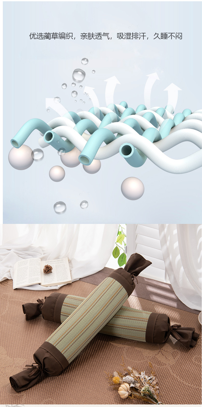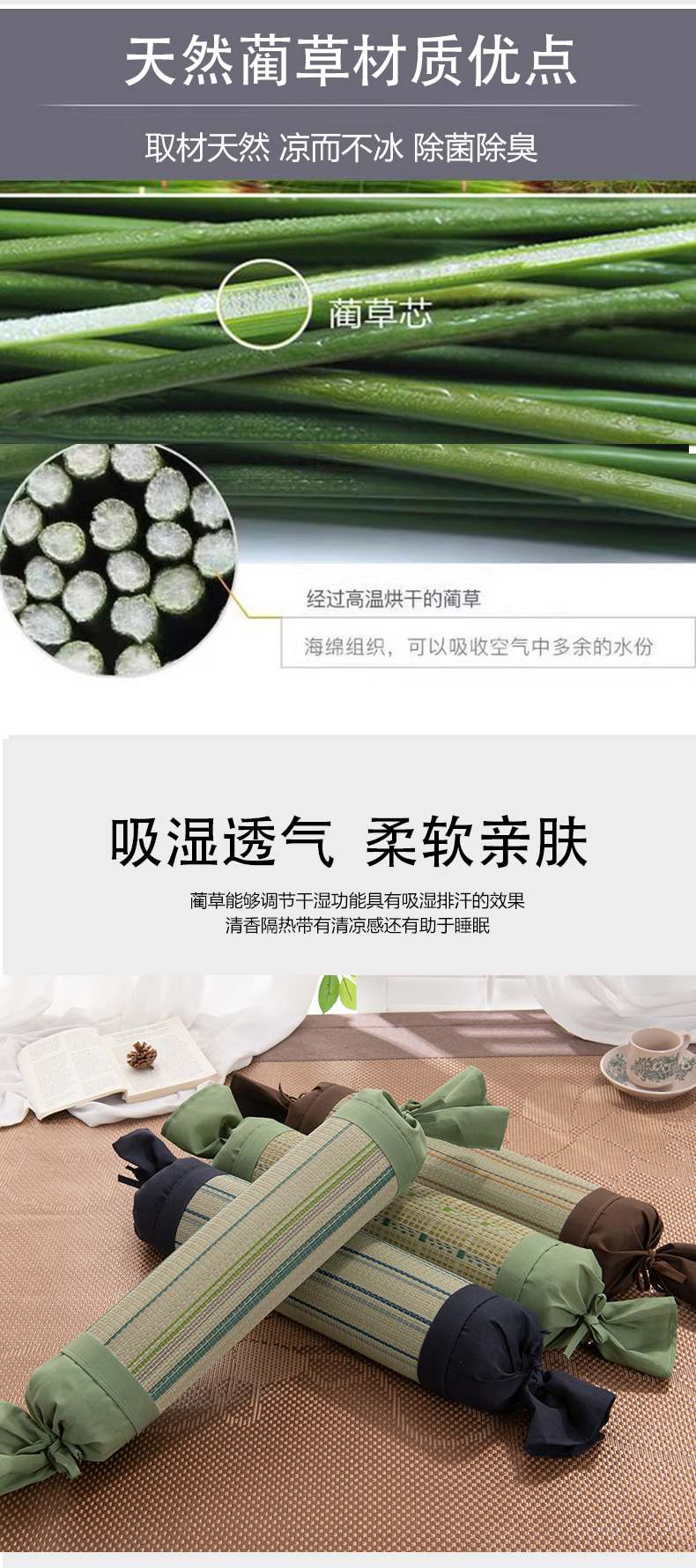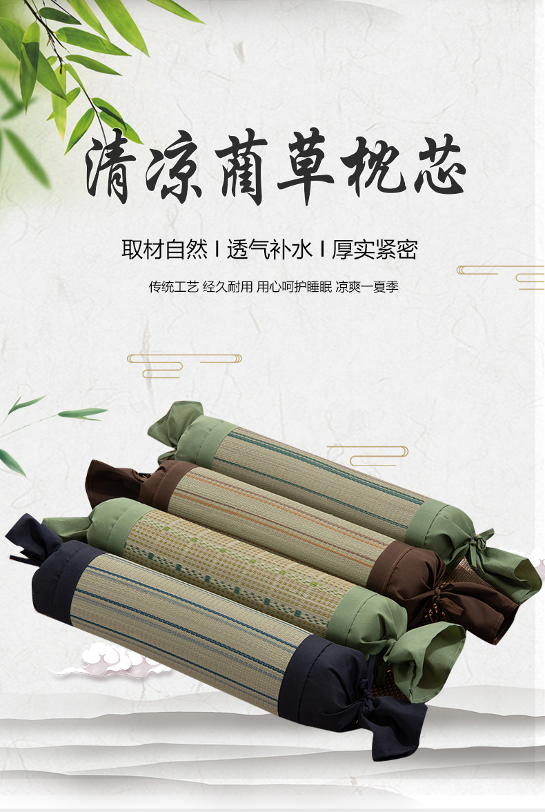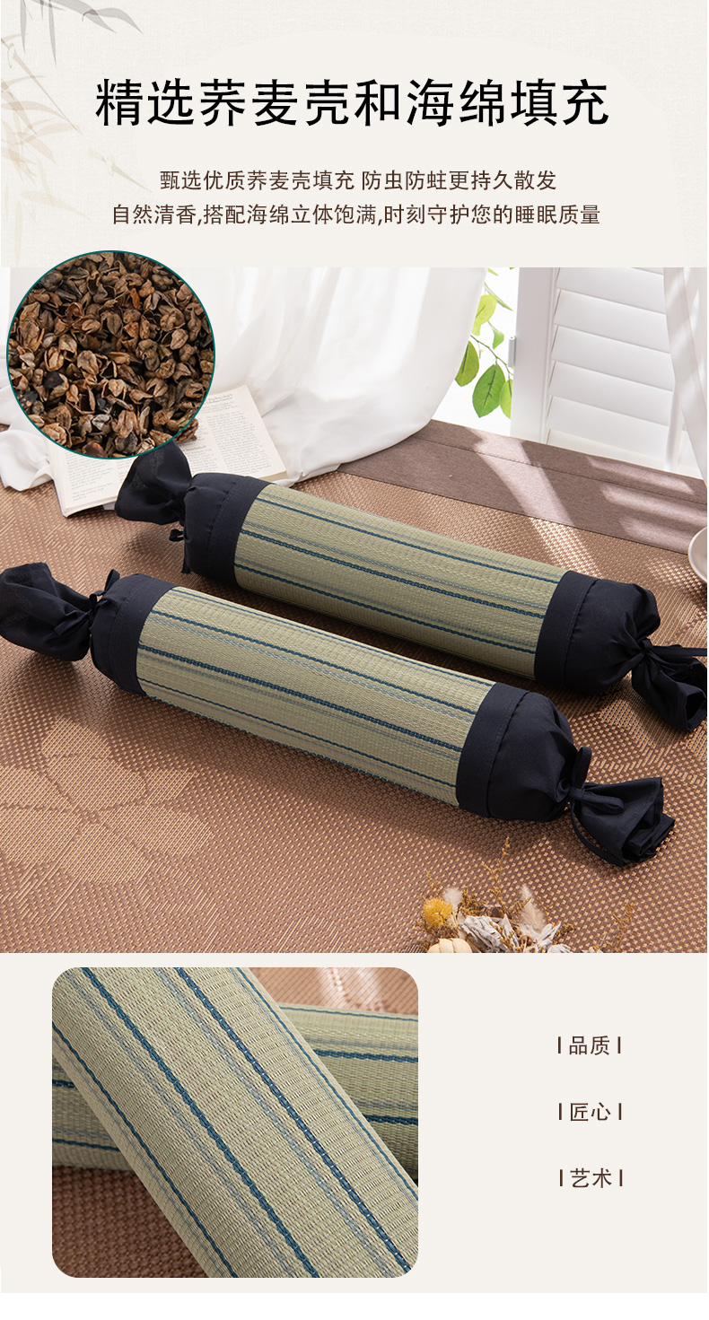 商品名称:(总)仁宇枕业 2026新款新品 天然蔺草凉席糖果枕头荞麦护颈椎圆形枕头枕芯
