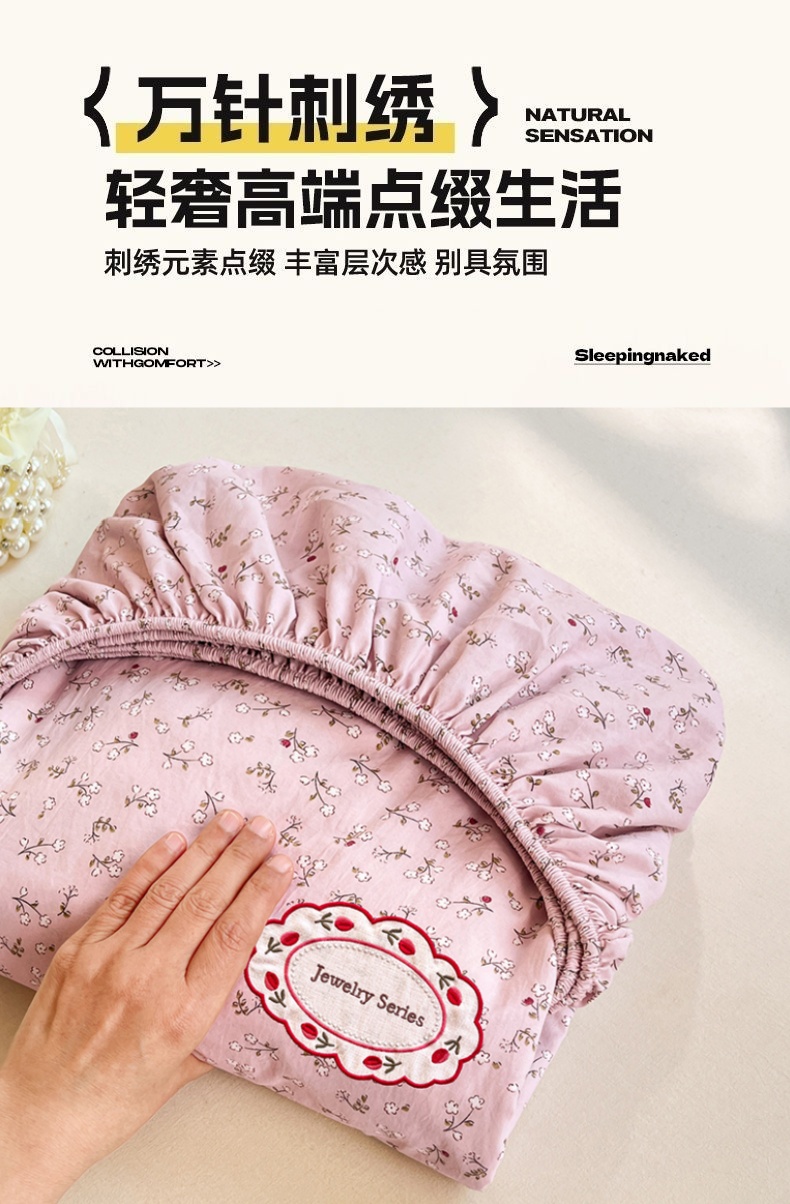 (总)梦舒羽 2026新款A类云朵棉亲肤四季款刺绣床笠席梦思床罩全包床单三件套,春日暖阳(刺绣款),花间集-粉(刺绣款),爱丽丝-粉(刺绣款),巴黎之恋(刺绣款),薄荷之夏(刺绣款),花漾甜心(刺绣款),秘密花园(刺绣款),芊芊花海(刺绣款),欣欣花语-紫(刺绣款),组合