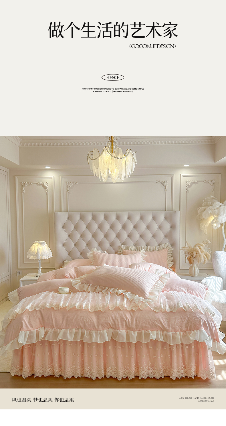 (总)瑞宝 2025新款法式花边全棉贡缎提花床裙款四件套-梦之语(控价265起),梦之语-蜜粉,梦之语-奶油白,梦之语-青柠绿,梦之语-香芋紫