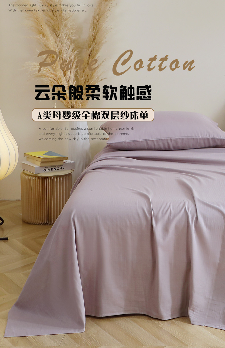 • 91家纺网 家纺一手货源 找家纺 晶缦家纺 2026新款纯棉纯色A类全棉双层纱单品床单床单单件单床单(水洗预处理)-觅琳系列 觅琳-浅藤紫