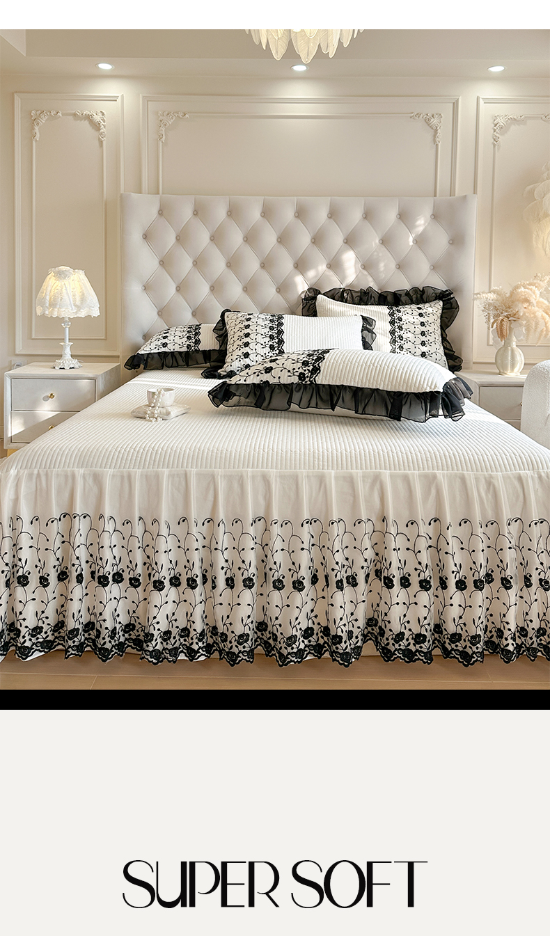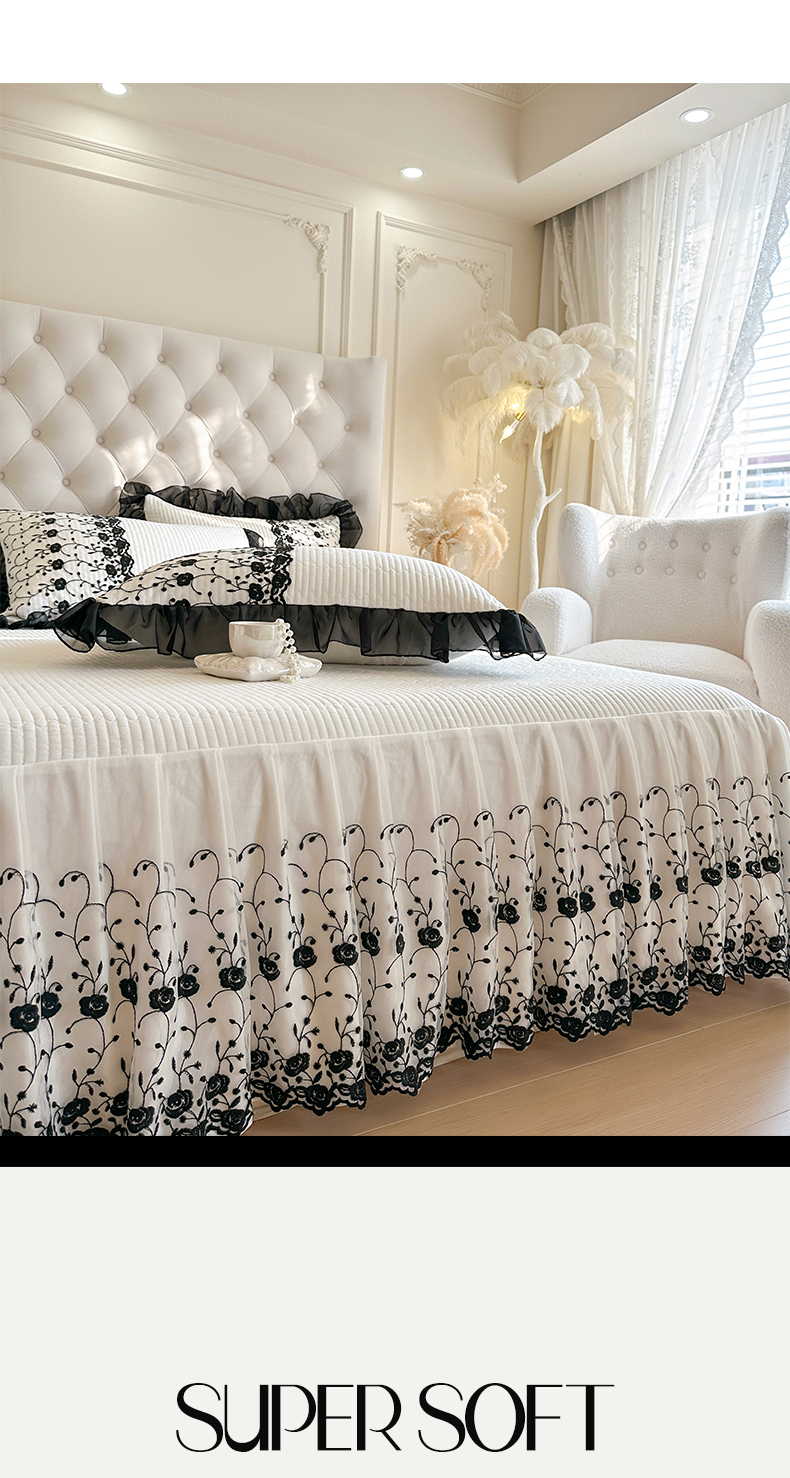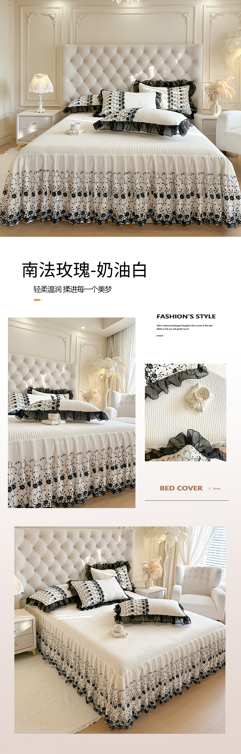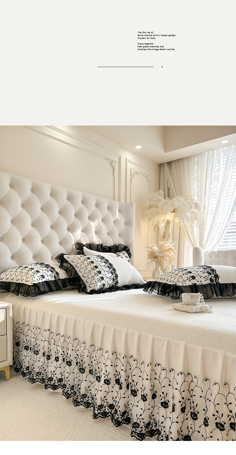 瑞宝 2026新款泡芙棉花边床裙三件套-南法玫瑰 南法玫瑰-高级米