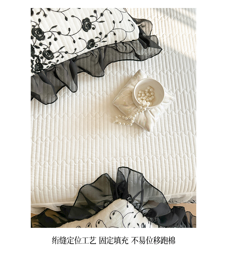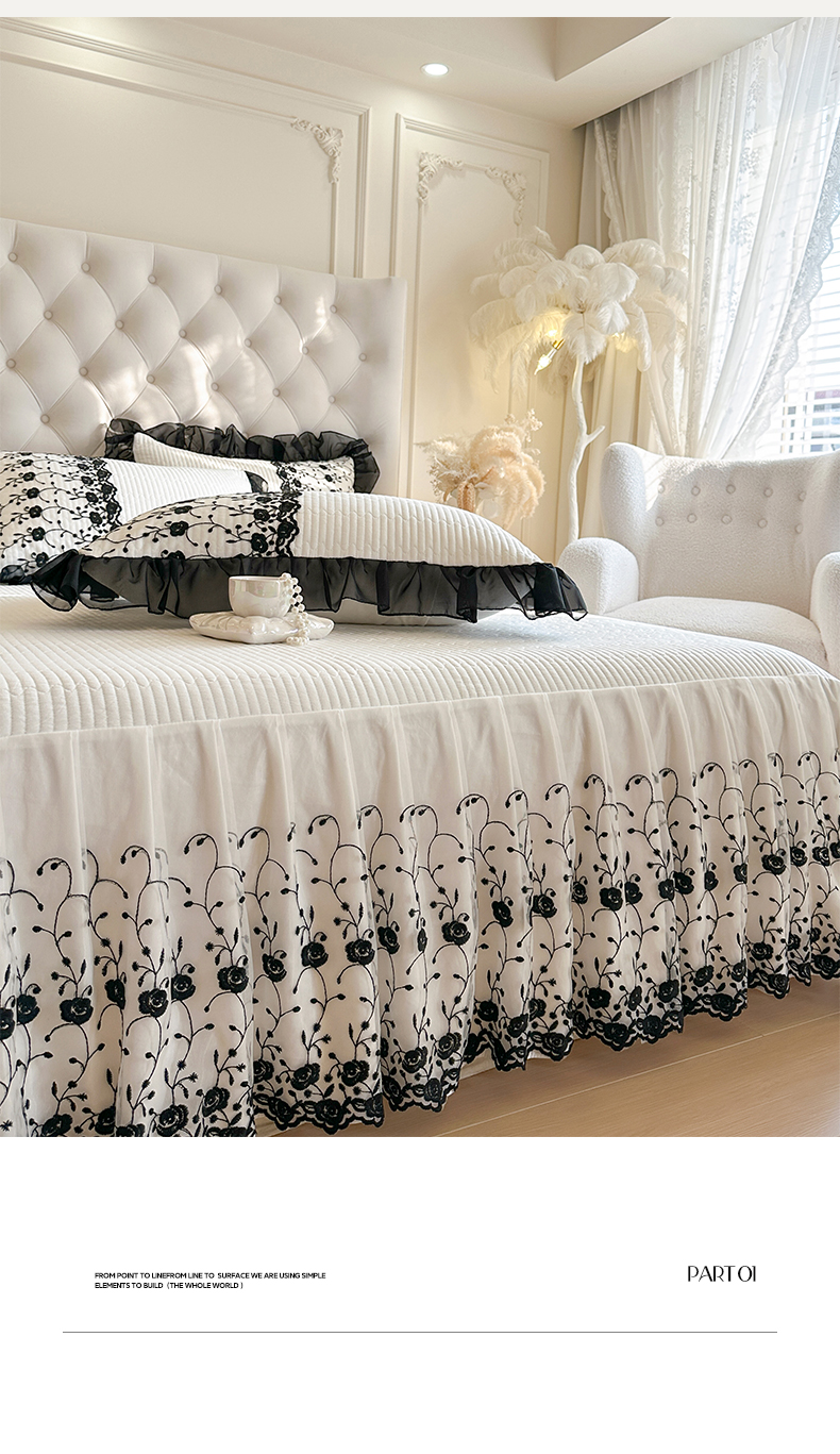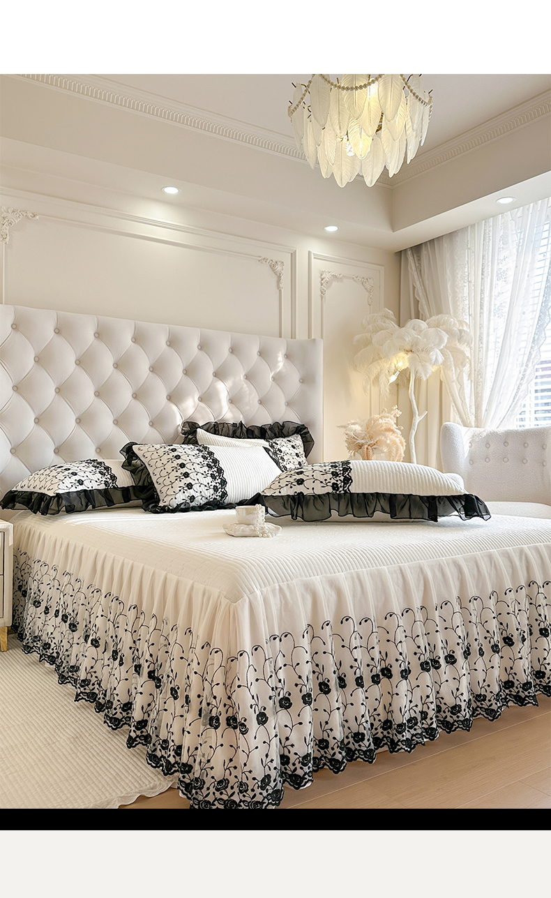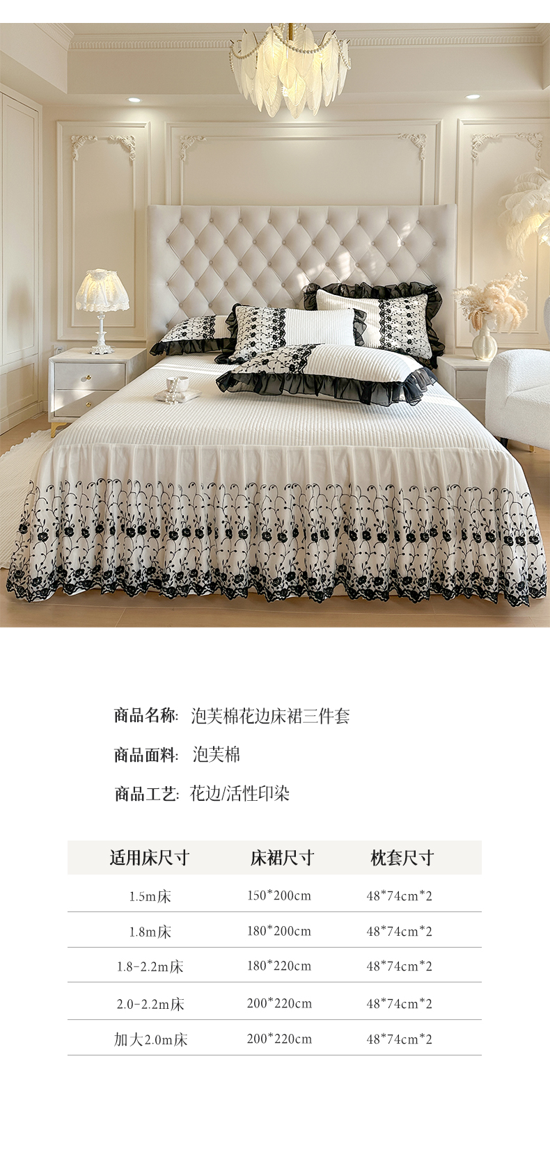 瑞宝 2026新款泡芙棉花边床裙三件套-南法玫瑰 南法玫瑰-高级米