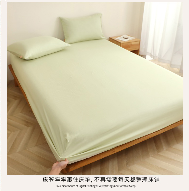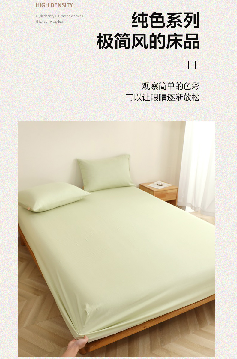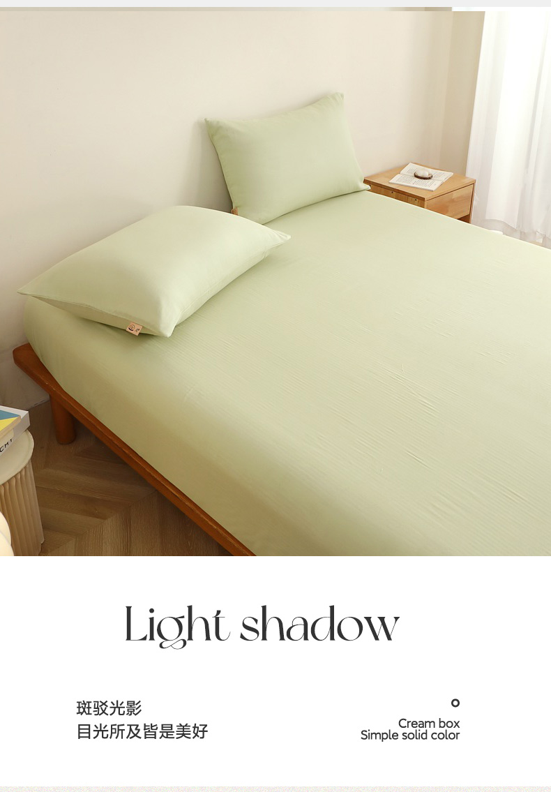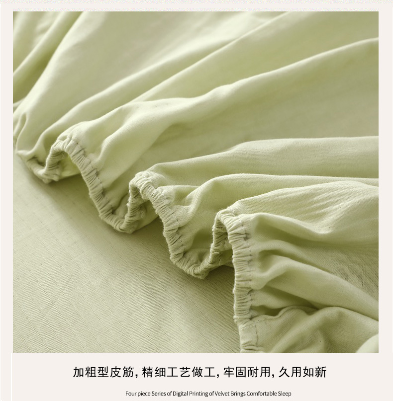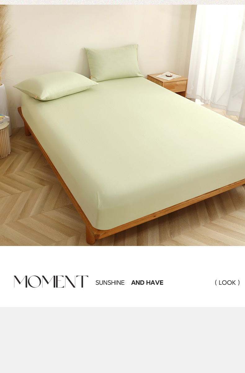 • 91家纺网 家纺一手货源 找家纺 晶缦家纺 2026新款纯棉纯色A类全棉双层纱单品床笠床笠单件单床笠(水洗预处理)-觅琳系列 觅琳-浅春绿