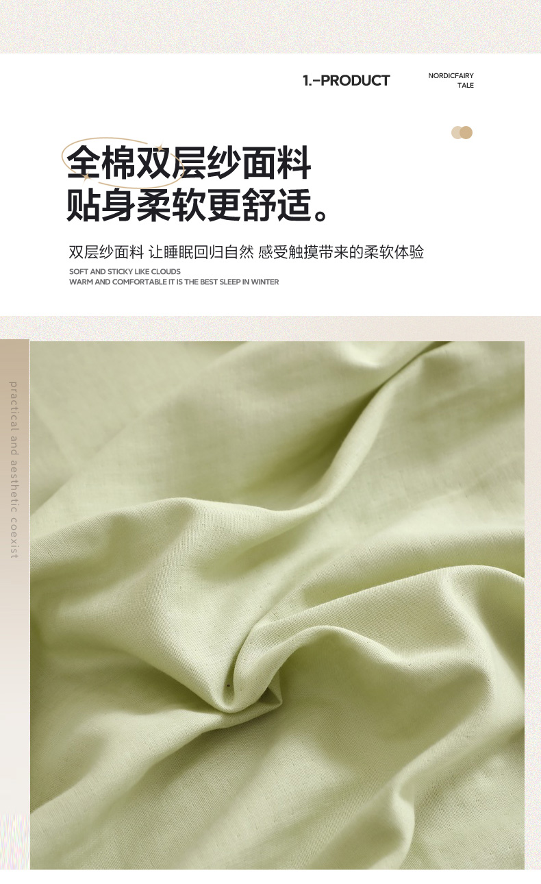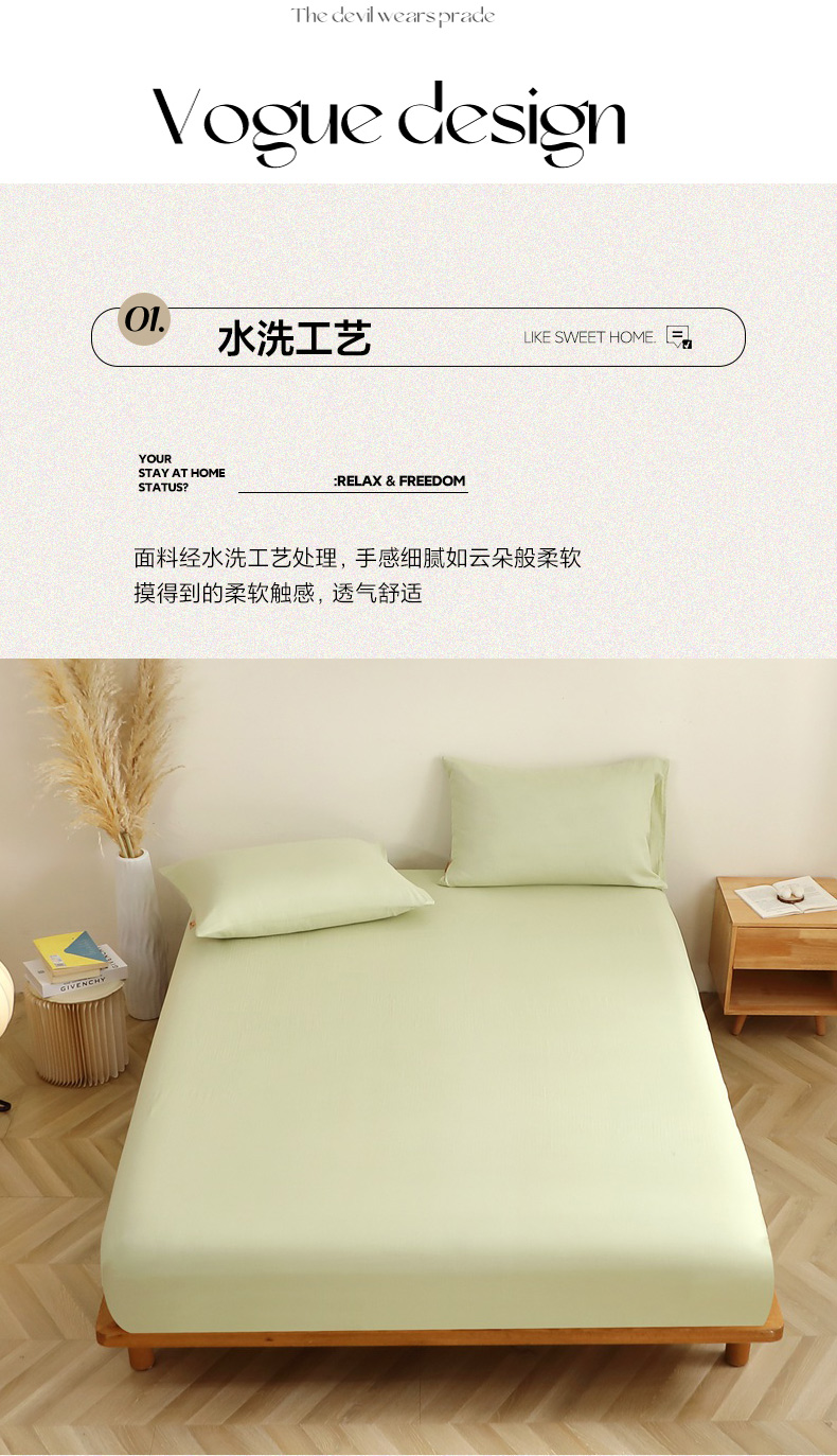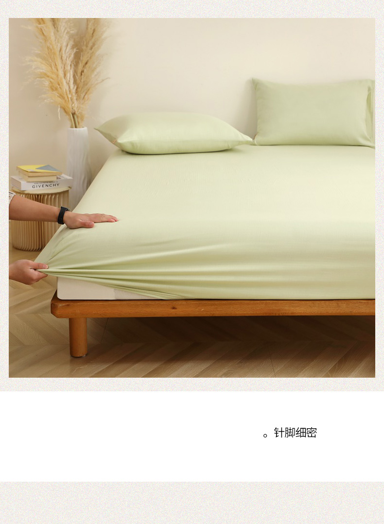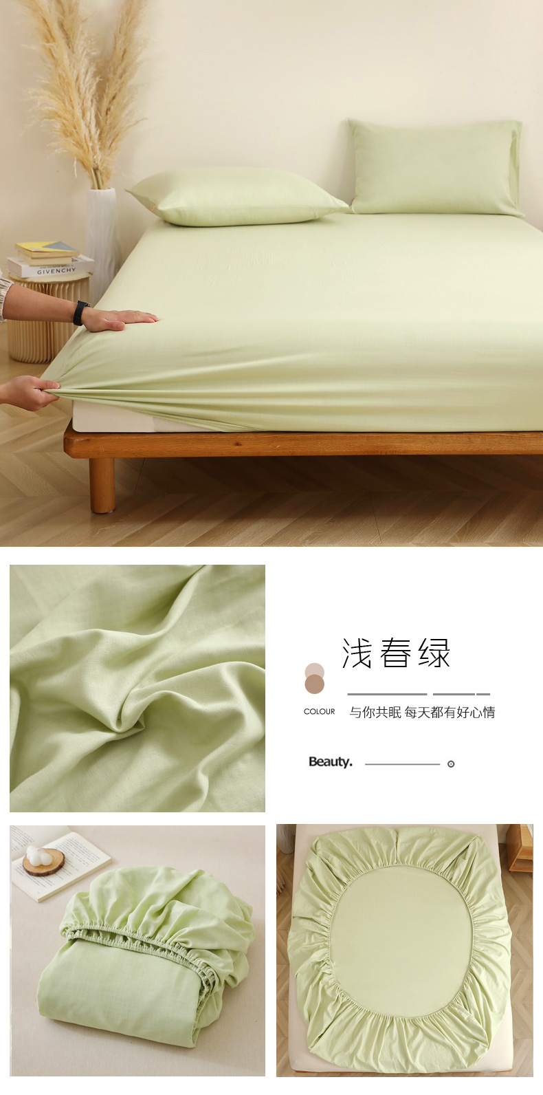 • 91家纺网 家纺一手货源 找家纺 晶缦家纺 2026新款纯棉纯色A类全棉双层纱单品床笠床笠单件单床笠(水洗预处理)-觅琳系列 觅琳-浅春绿