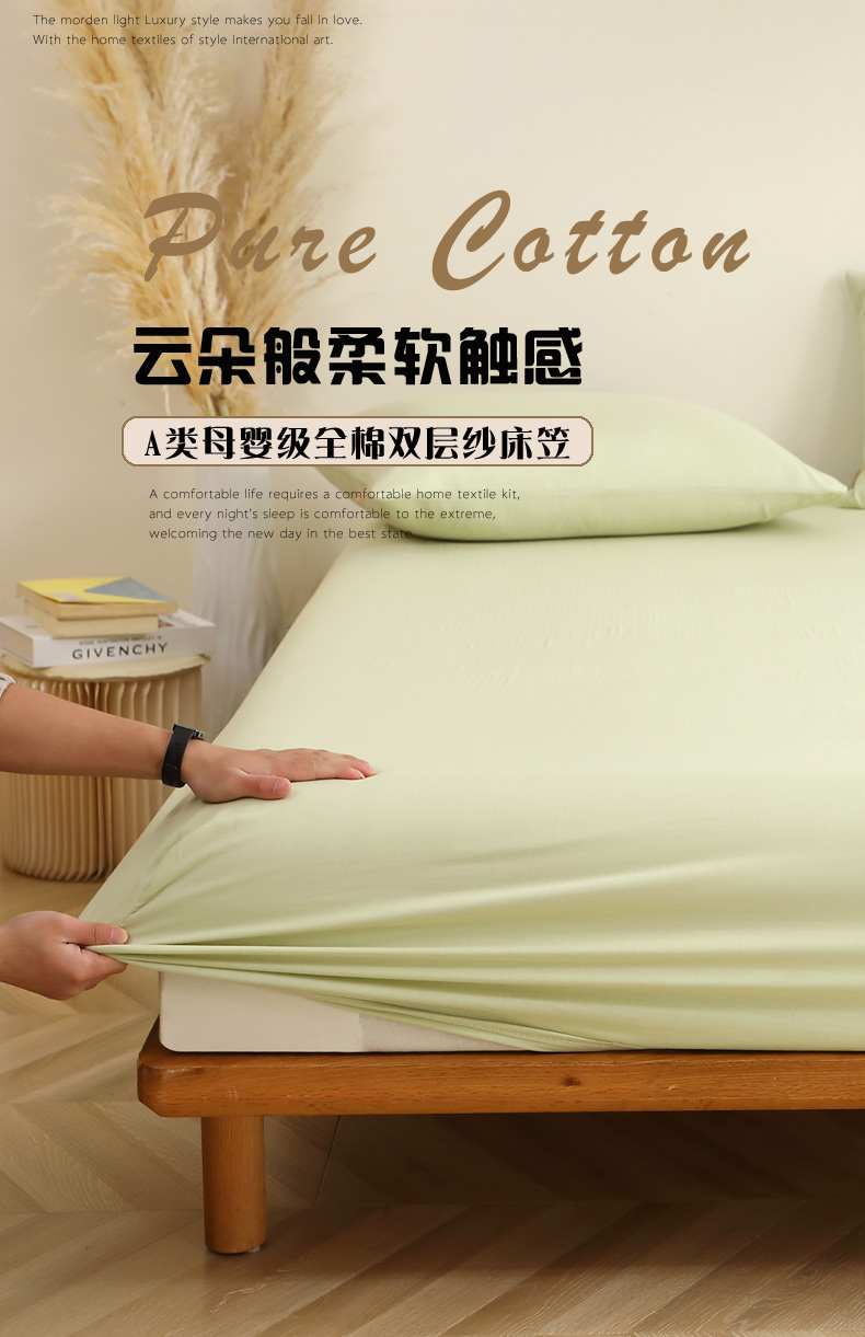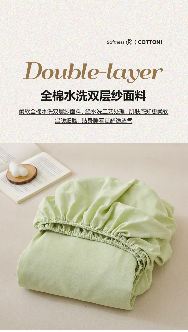 晶缦家纺 2026新款纯棉纯色A类全棉双层纱单品床笠床笠单件单床笠(水洗预处理)-觅琳系列 觅琳-浅春绿