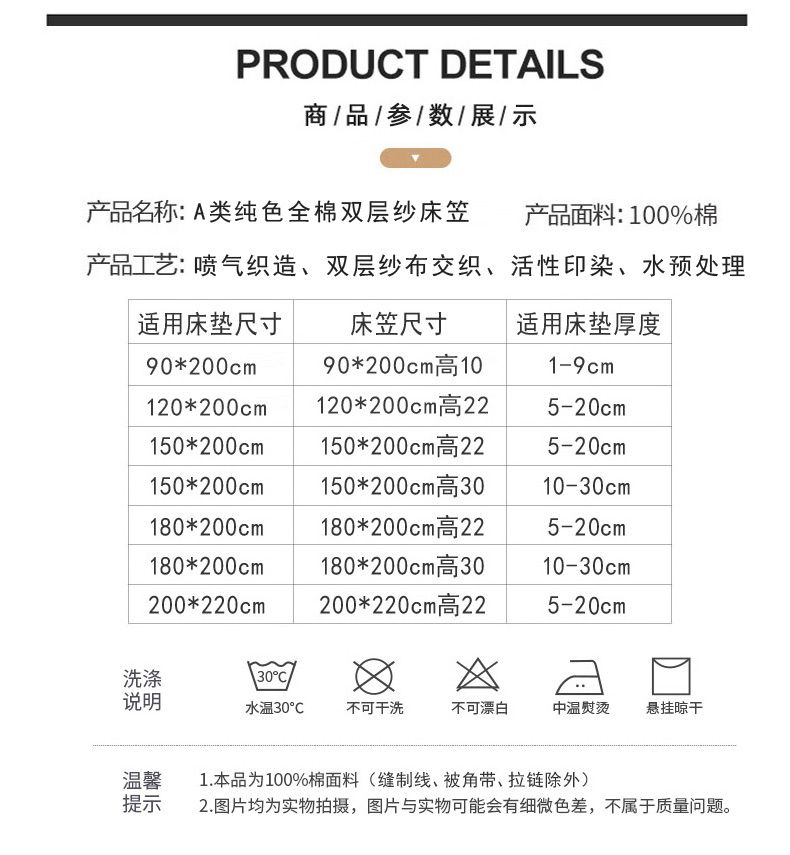 150x200cm单床笠高30cm+枕套一对