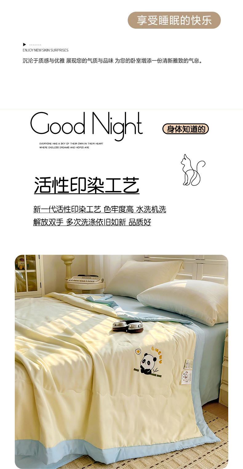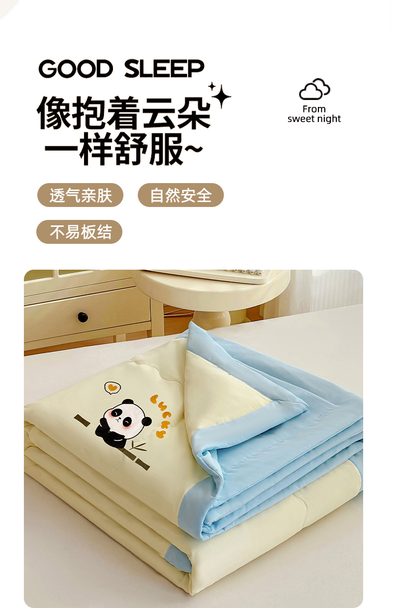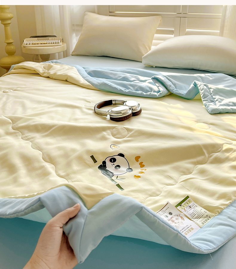易展家居 2026新款水洗棉新疆棉花夏被-熊猫 能猫-黄拼蓝