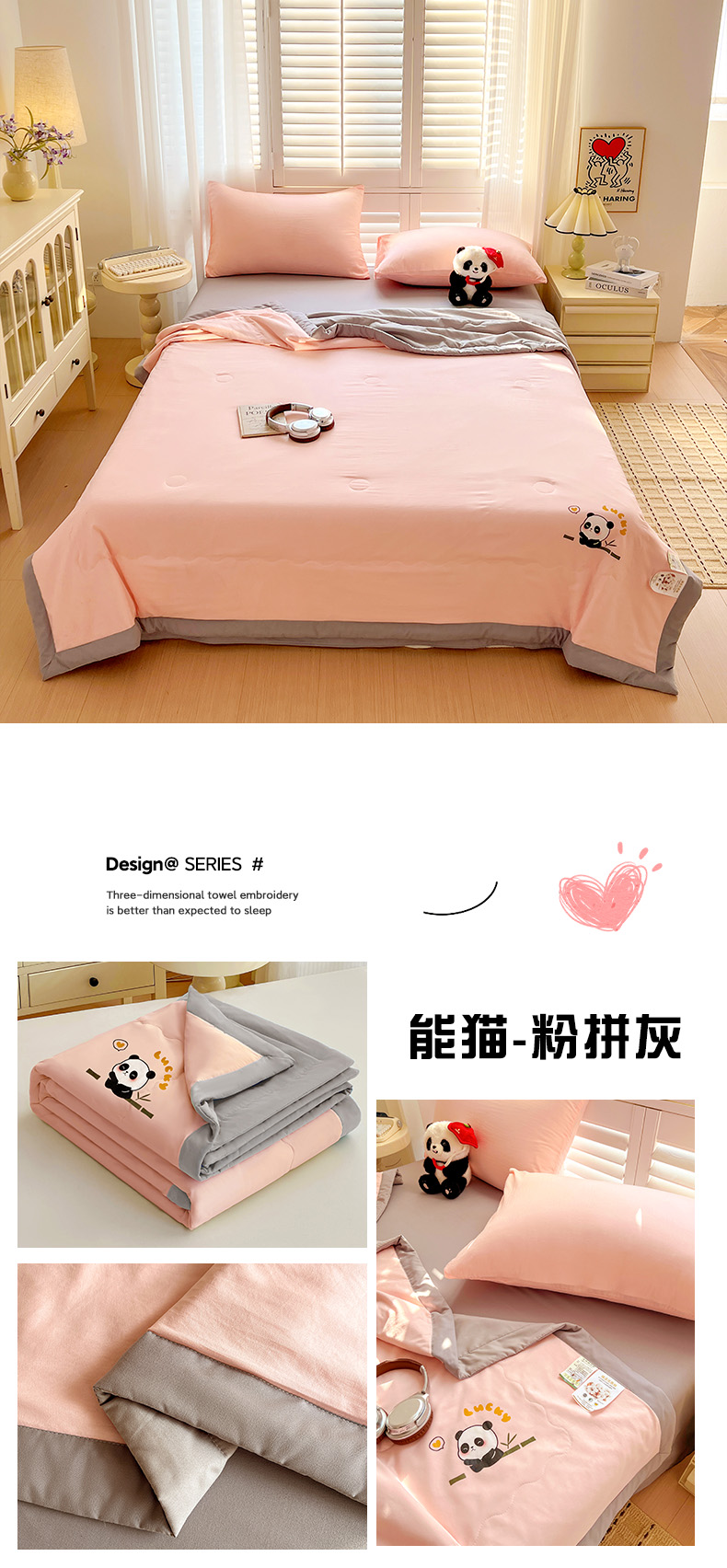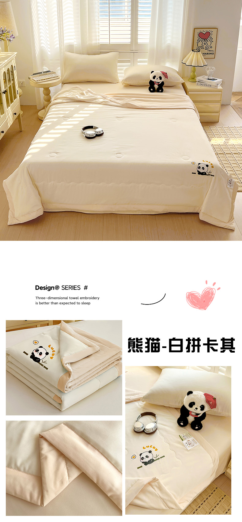 (总)易展家居 2025年新款水洗棉熊猫夏被,熊猫-奶昔白,熊猫-轻绿,熊猫-轻银粉,熊猫-轻银灰