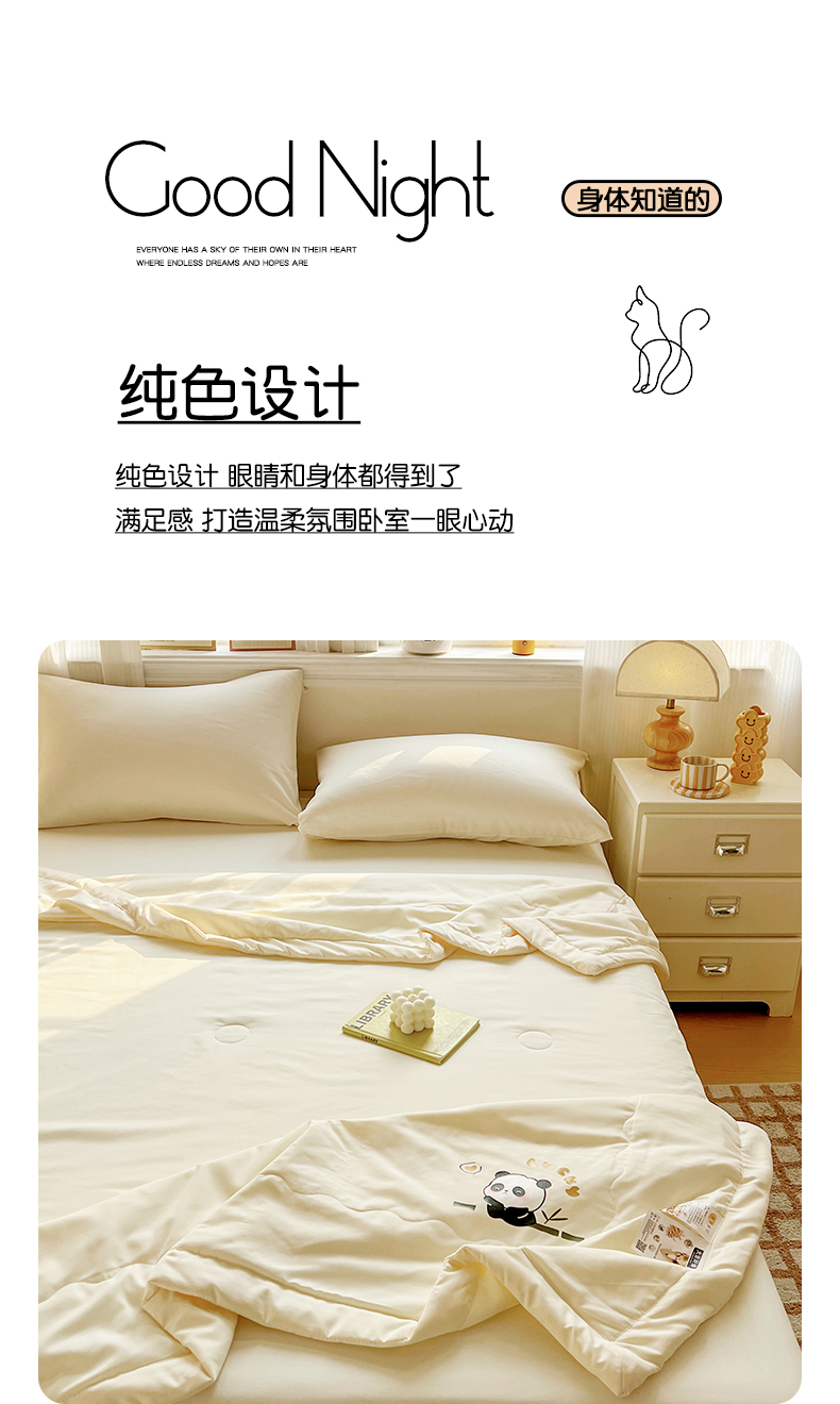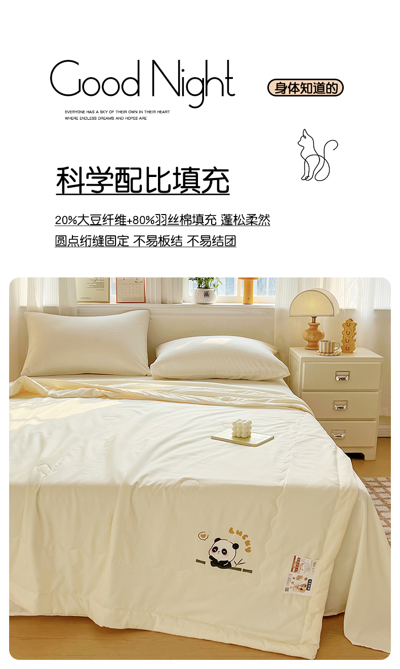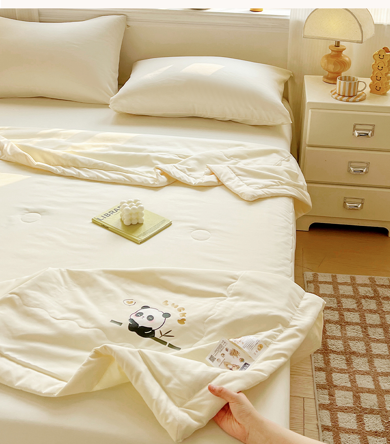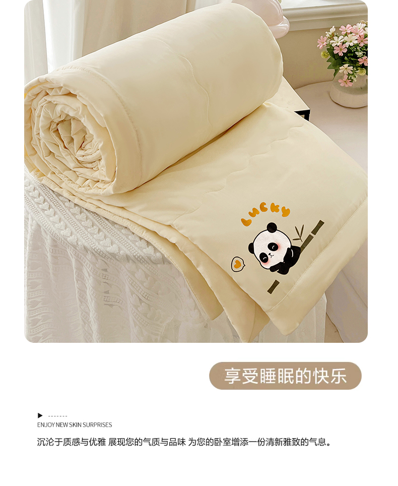商品名称:易展家居 2026新款水洗棉大豆纤维夏被-无染+熊猫 熊猫-奶昔黃