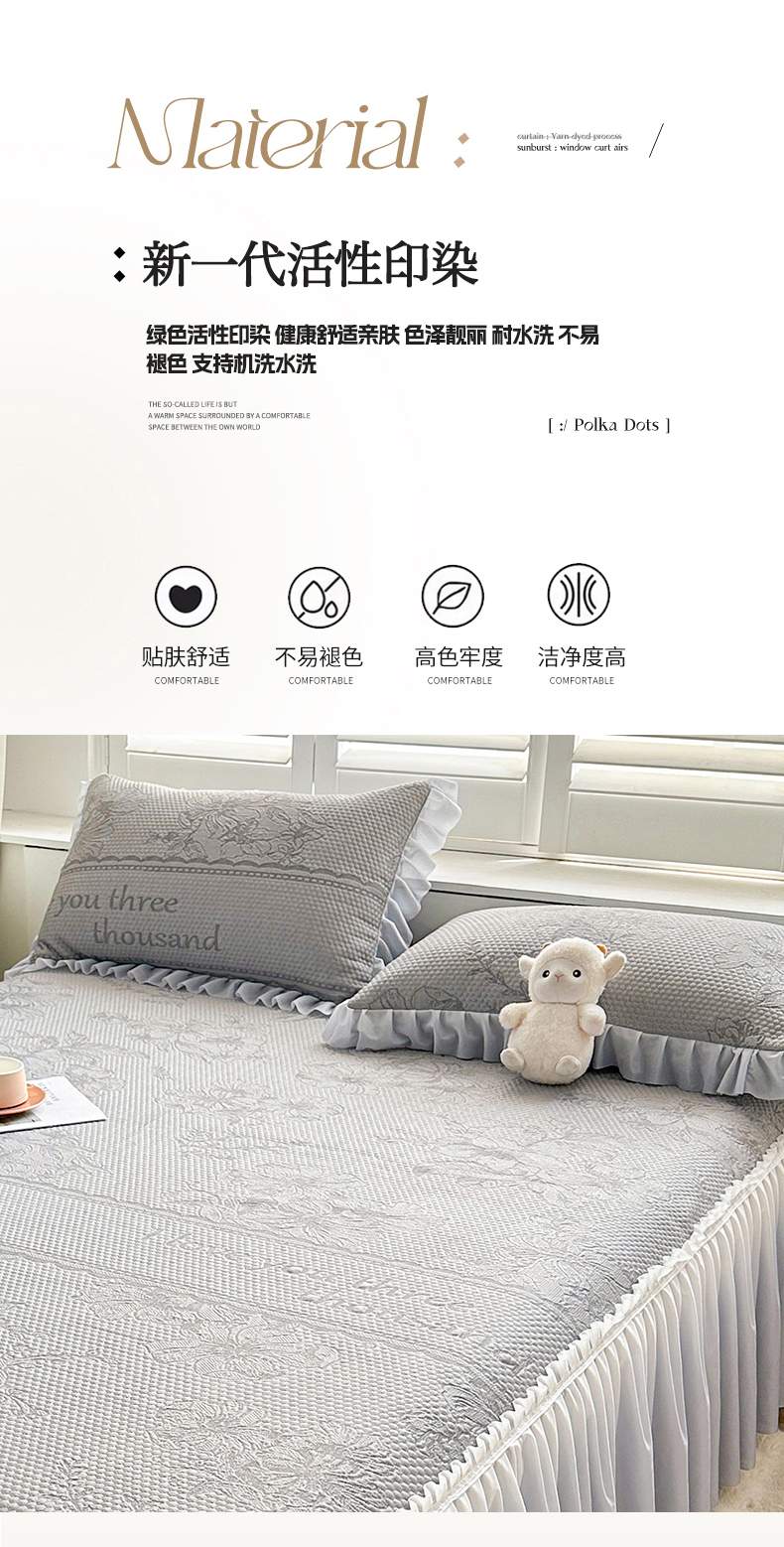 (总)源梦家纺 2024新款幸运草夹棉单床裙,纯白,大红,豆沙,粉色,灰色,兰色,米黄,玉色