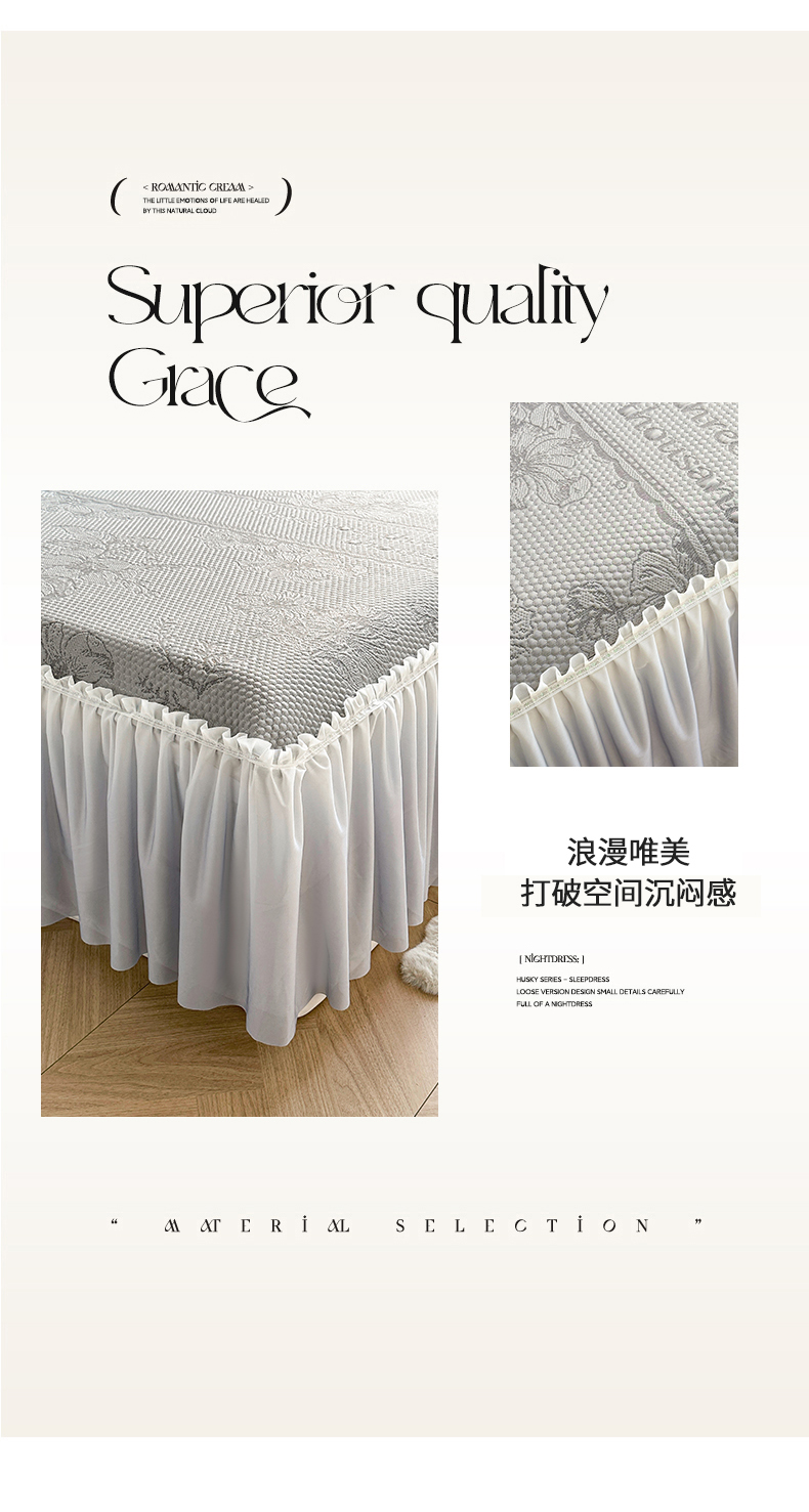 • 91家纺网 家纺一手货源 找家纺 怡源梦 2026新款A类冰豆豆凉感提花床裙凉席-花之恋系列 花之恋 灰色