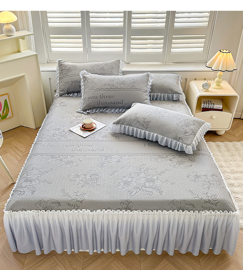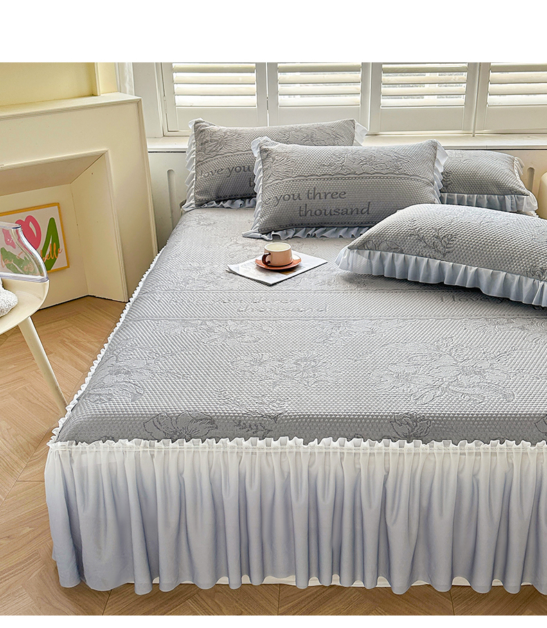 怡源梦 2026新款A类冰豆豆凉感提花床裙凉席-花之恋系列 花之恋 灰色