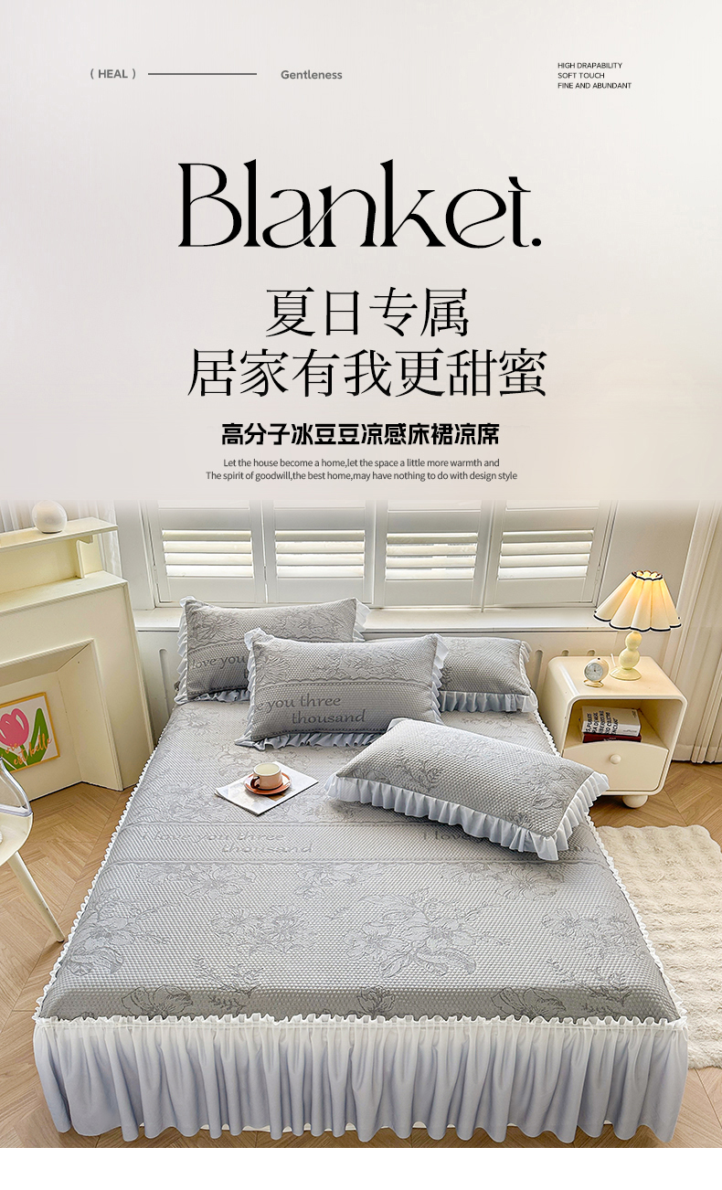(总)怡源梦 2026新款A类PE聚乙烯冰豆豆提花床裙款席子凉席三件套-梦之约,梦之约-灰色,梦之约-蓝色,梦之约-米色,梦之约-藕粉,梦之约-浅绿