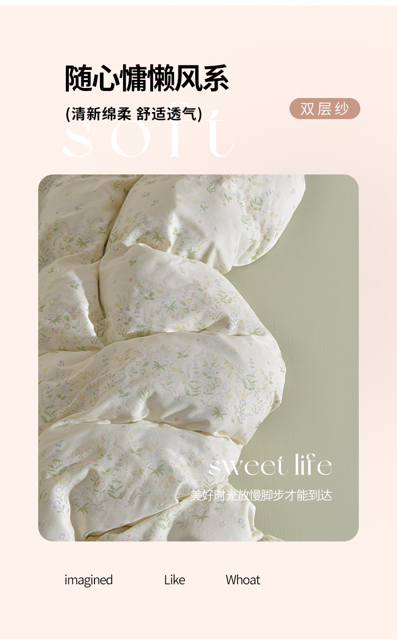 当前位置: 91家纺网 > 商品网购 > 床品套件 > 四件套 > 全棉普通四件套 > 乐窝家纺仓储 2026年新款高密A类母婴级全棉双层纱四件套学生宿舍三件套床单被套 绿姿