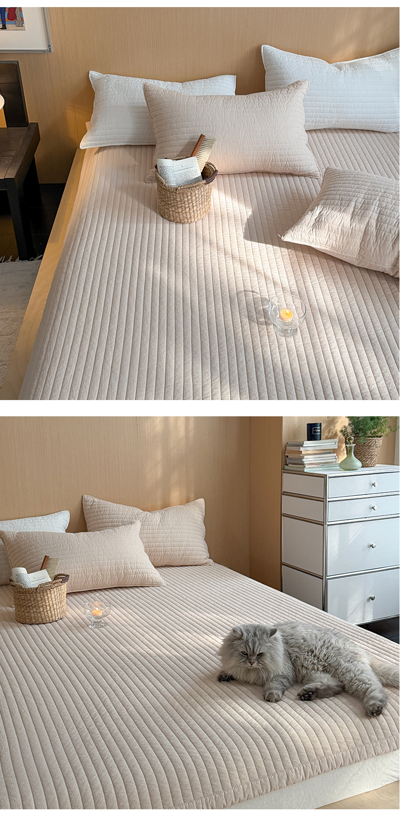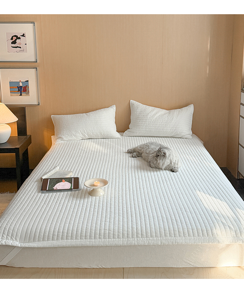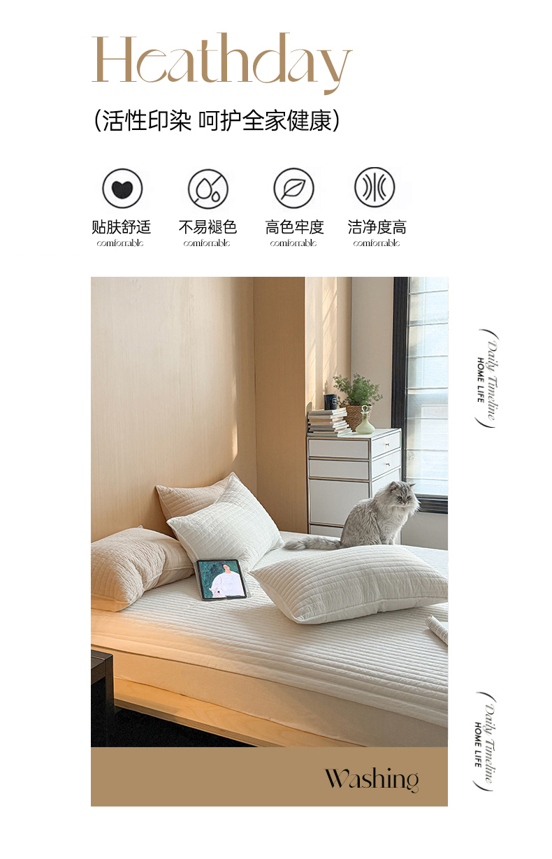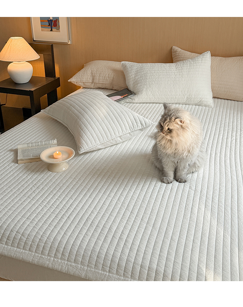 • 91家纺网 家纺一手货源 找家纺 乐野家居 2026新款韩风系列高密度色织全棉纯棉绗缝床盖 松紧防滑床单 组合图仅供展示不可下单
