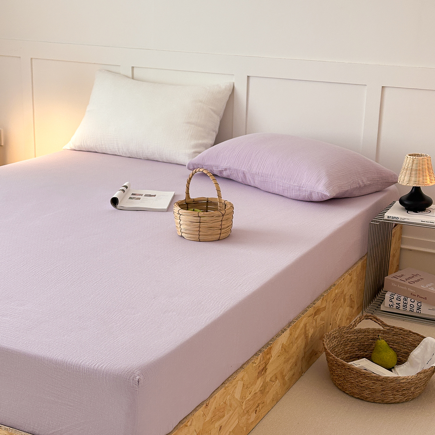 玖弘家居 2026新款糖果印花色系皱皱纱单品床笠系列 浅紫