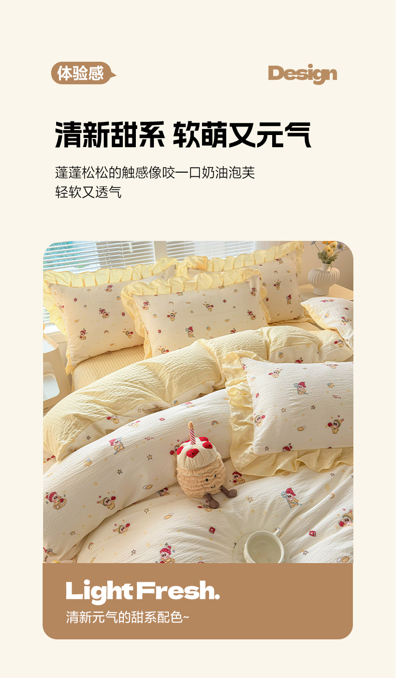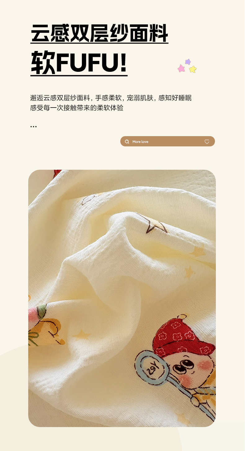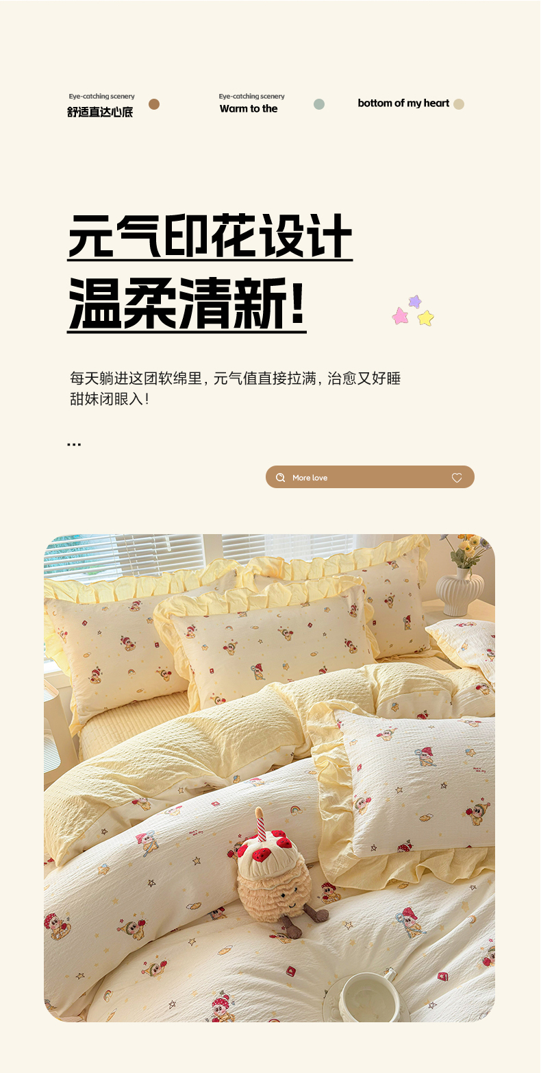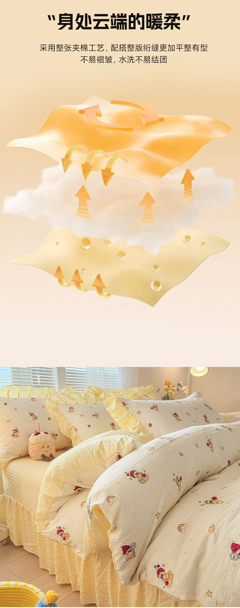 商品名称:畅畅家纺 2026新款春夏小清新泡芙双层纱床盖款四件套 星星人