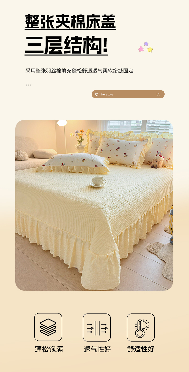 畅畅家纺 2026新款春夏小清新泡芙双层纱床盖款四件套 星星人