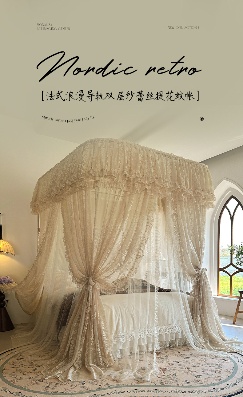 当前位置: 91家纺网 > 商品网购 > 床上用品 > 蚊帐 > 导轨蚊帐 > 都市缘蚊帐 2026春夏新款单双层豪华高端蕾丝提花款导轨蚊帐-玫瑰庄园-305款 305款玫瑰庄园奶油杏