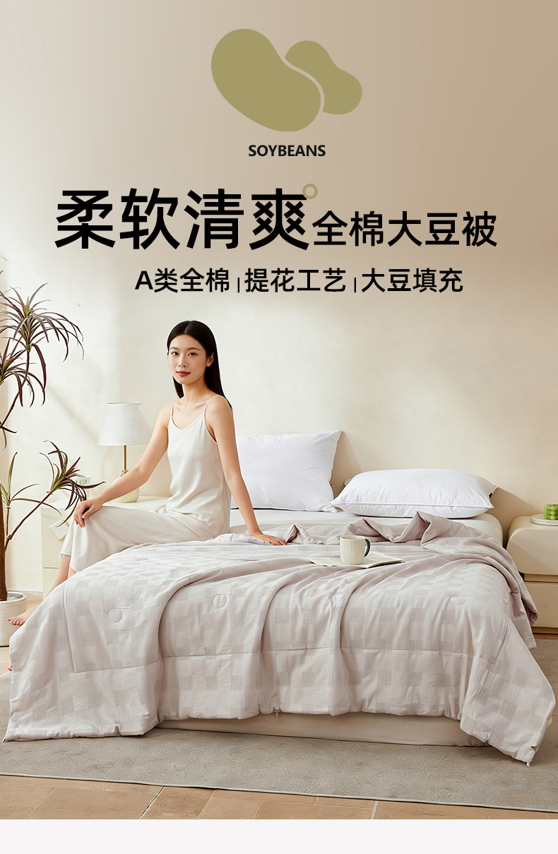 (总)锦尚坊被芯馆 2026新款100%纯棉大提花夏凉被大豆空调被 全棉春秋被学生棉被,米黄,奶白,浅草绿,浅灰,玉色,组合图仅展示