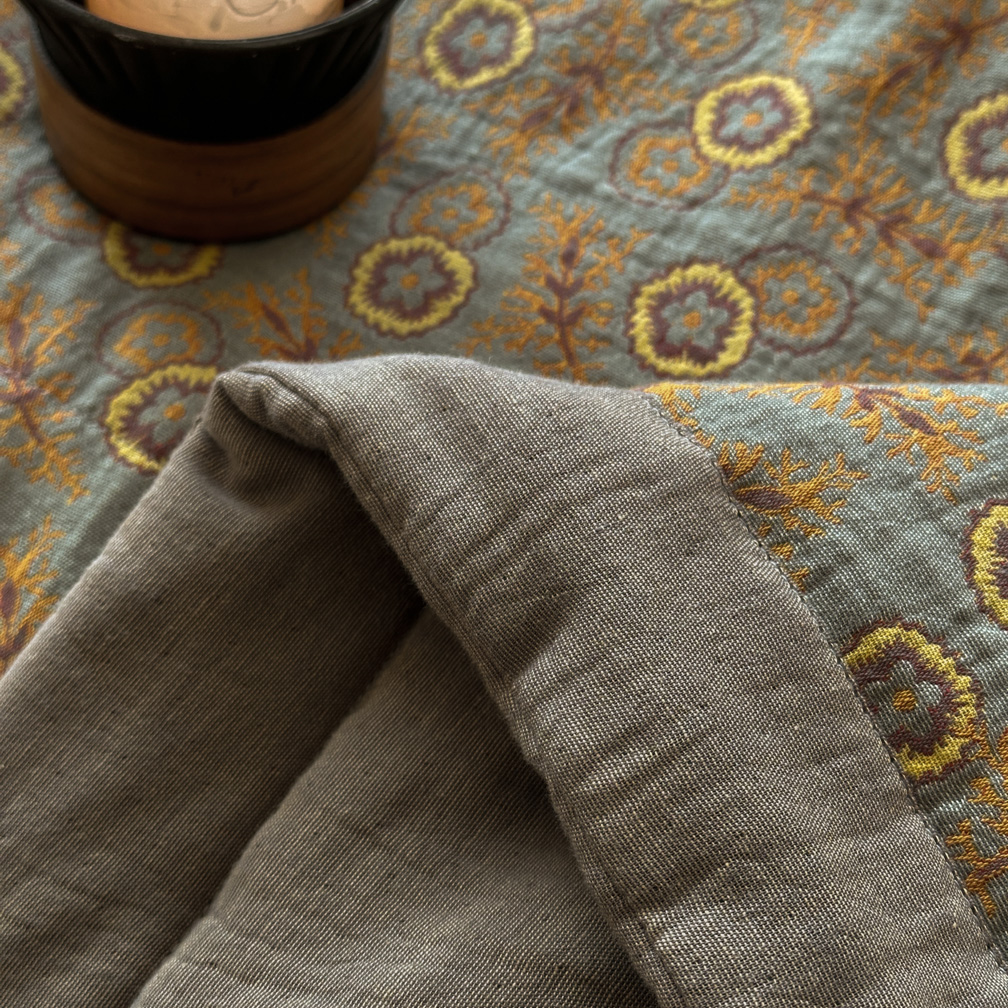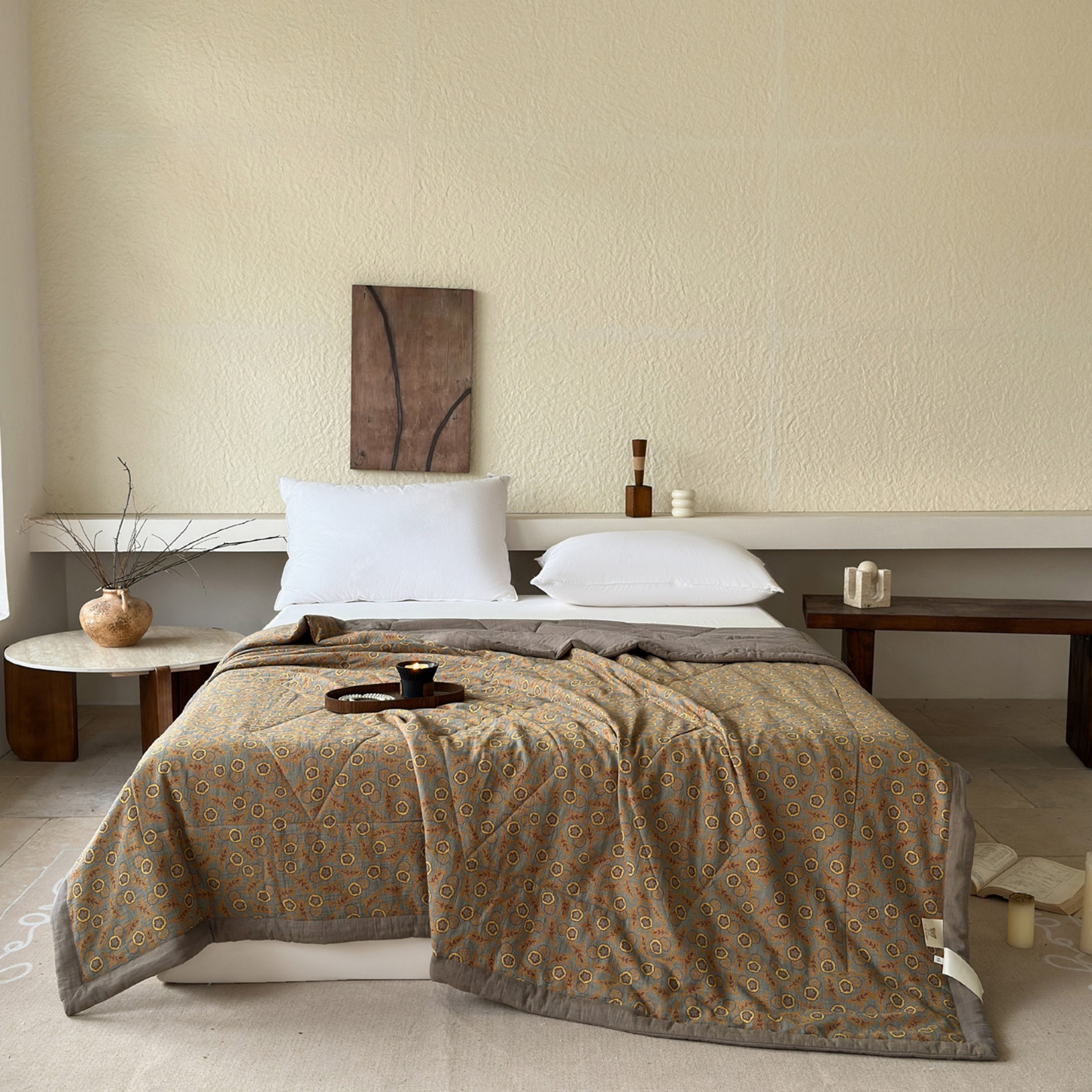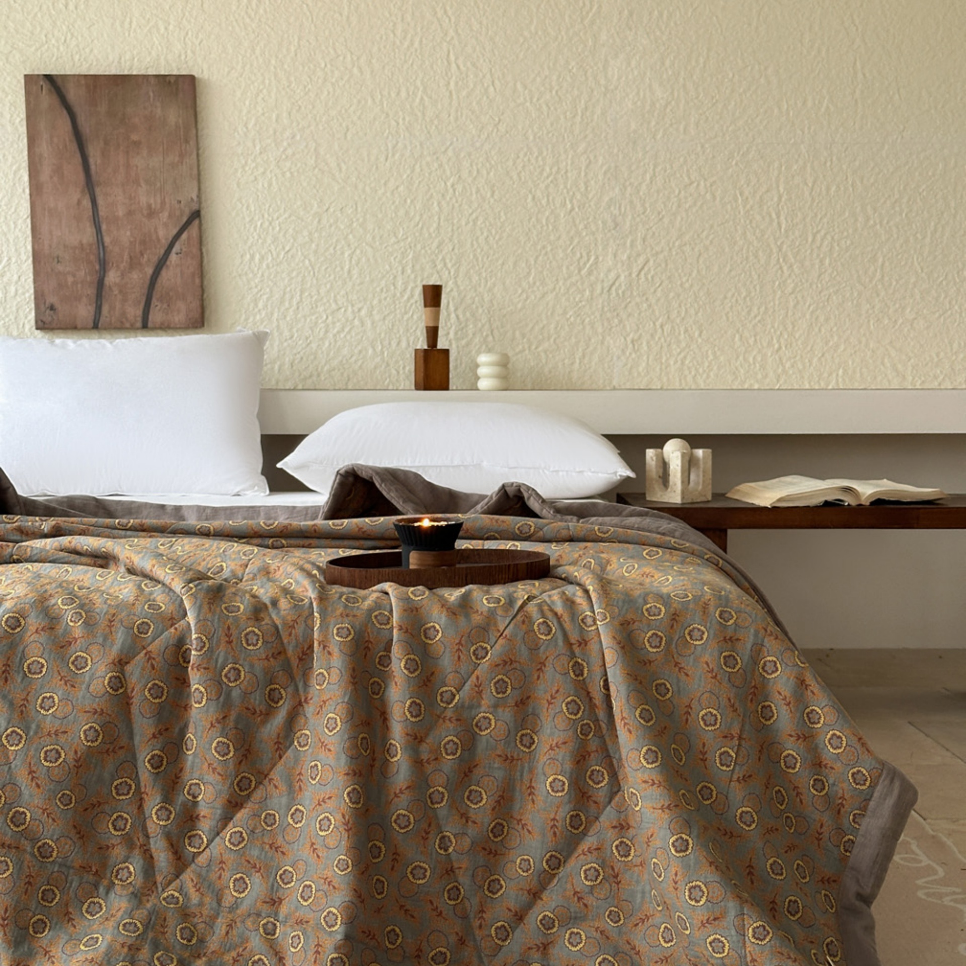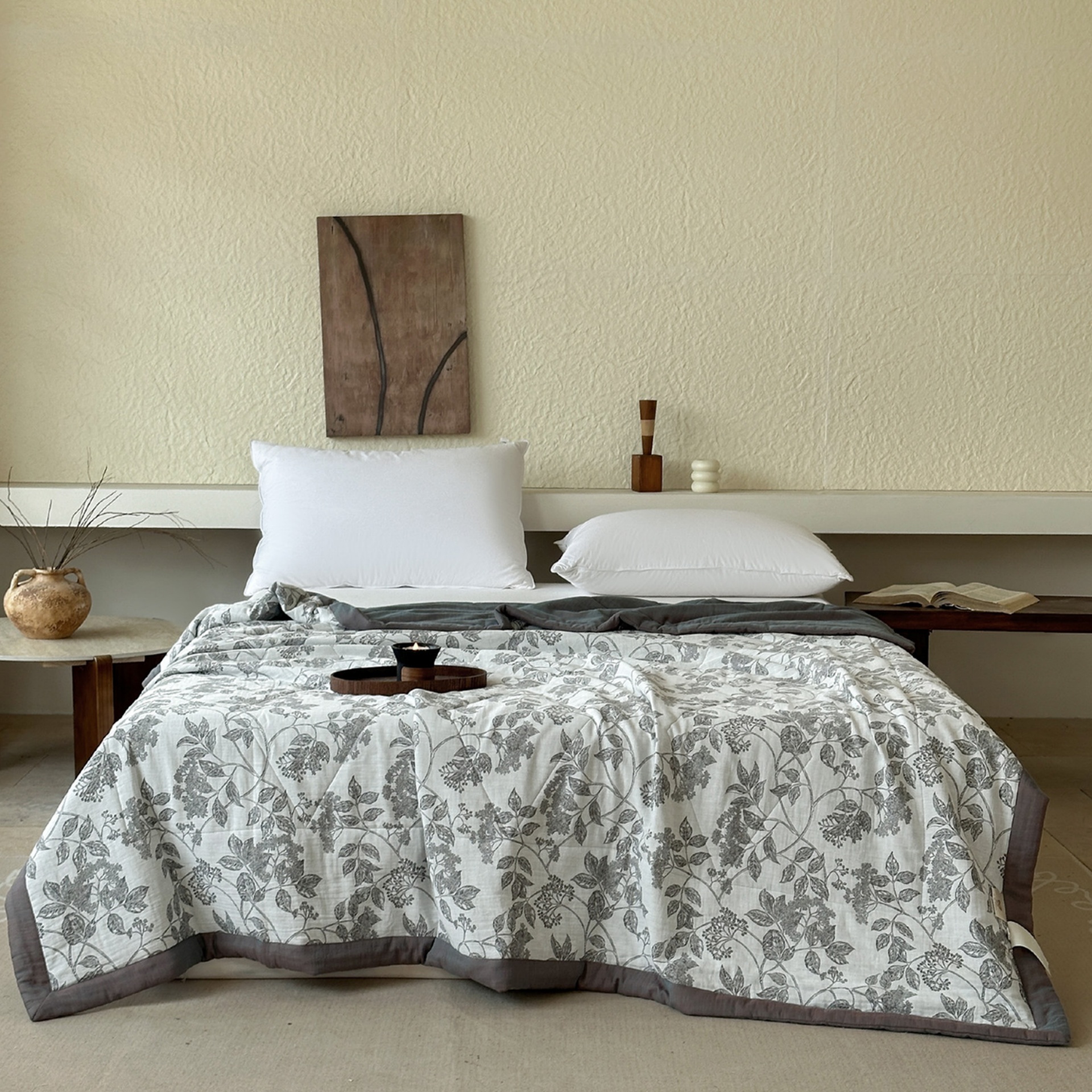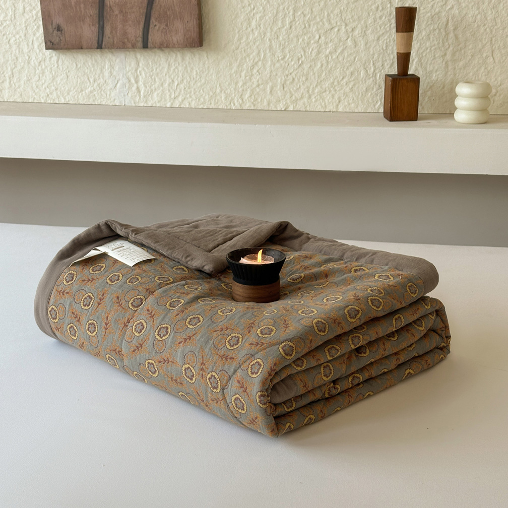 (总)芯丝路枕业 2026新款印花双层纱夏被,柠语-桔,宛夏-绿,云纱-浅蓝