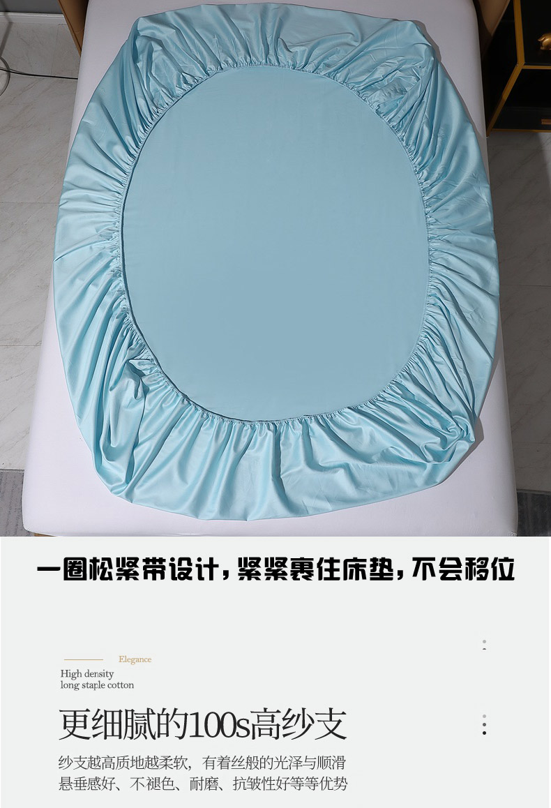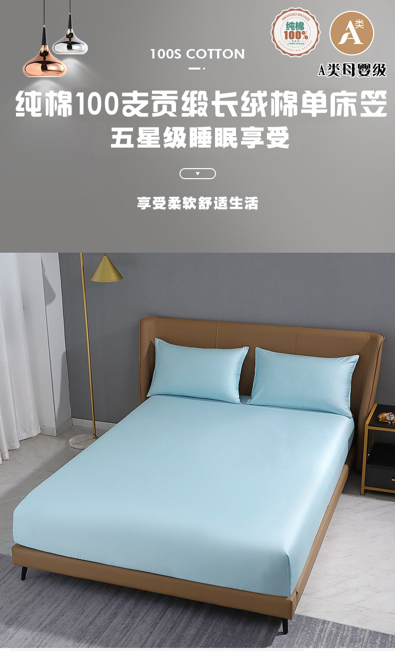 晶缦家纺 2026新全棉A类纯棉100支贡缎长绒棉纯色多规格单床笠 床笠单件-绮云系列 绮云-浅天蓝