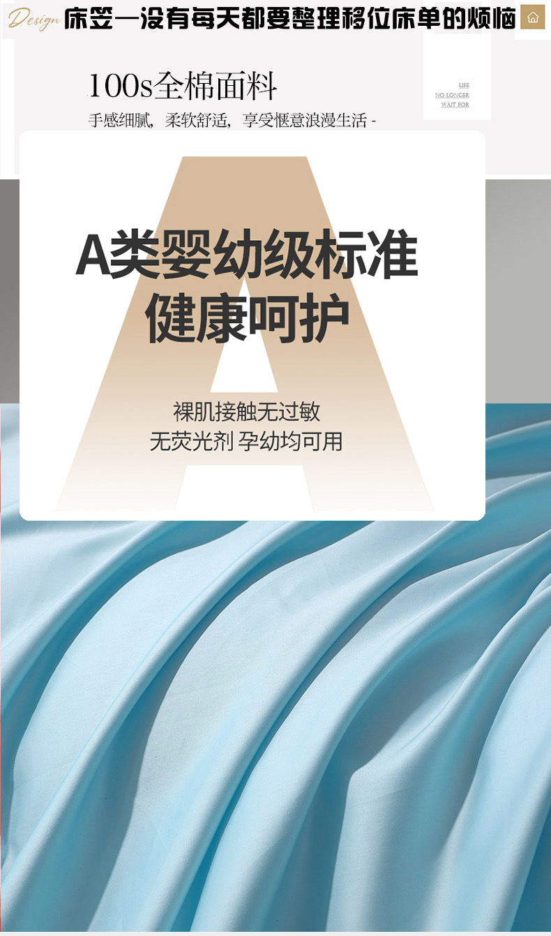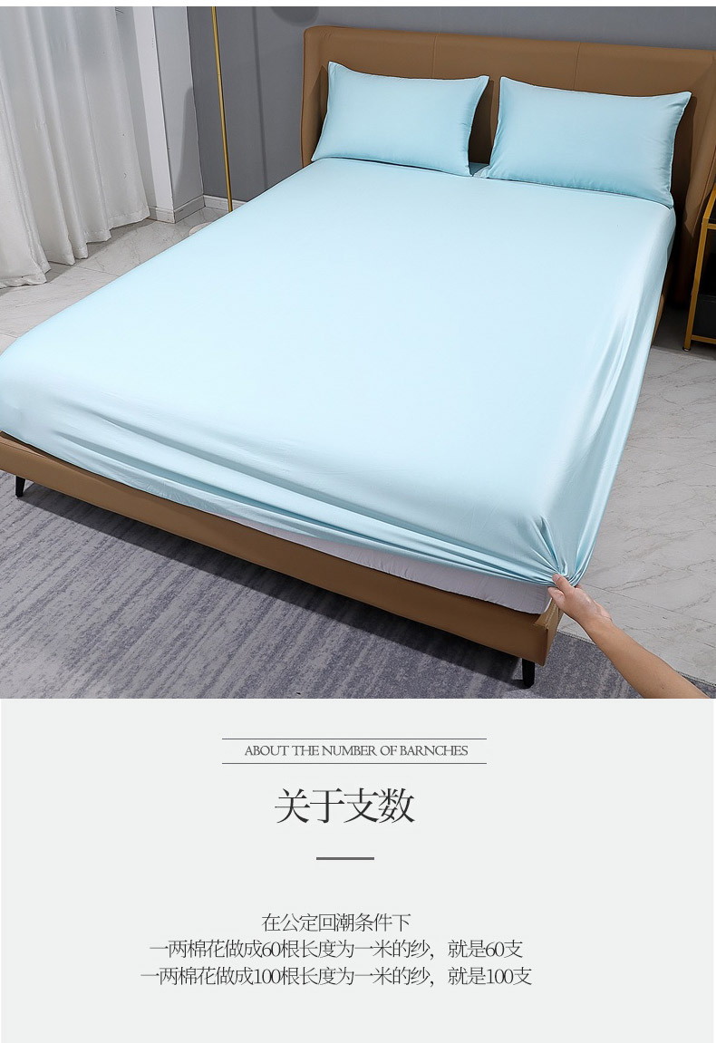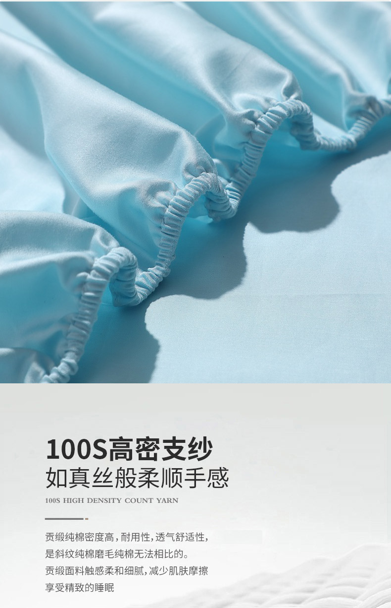 • 91家纺网 家纺一手货源 找家纺 晶缦家纺 2026新全棉A类纯棉100支贡缎长绒棉纯色多规格单床笠 床笠单件-绮云系列 绮云-浅天蓝