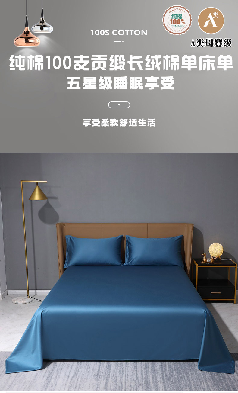(总)晶缦家纺 2026新全棉A类纯棉100支贡缎长绒棉纯色多规格单床单 床单单件-绮云系列