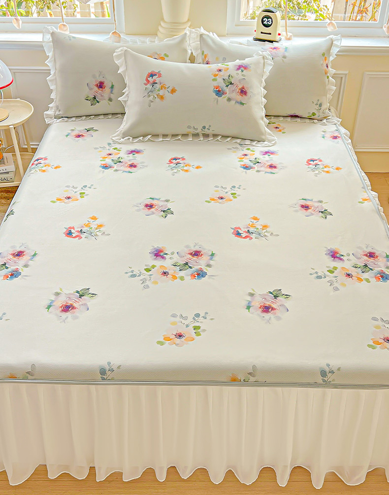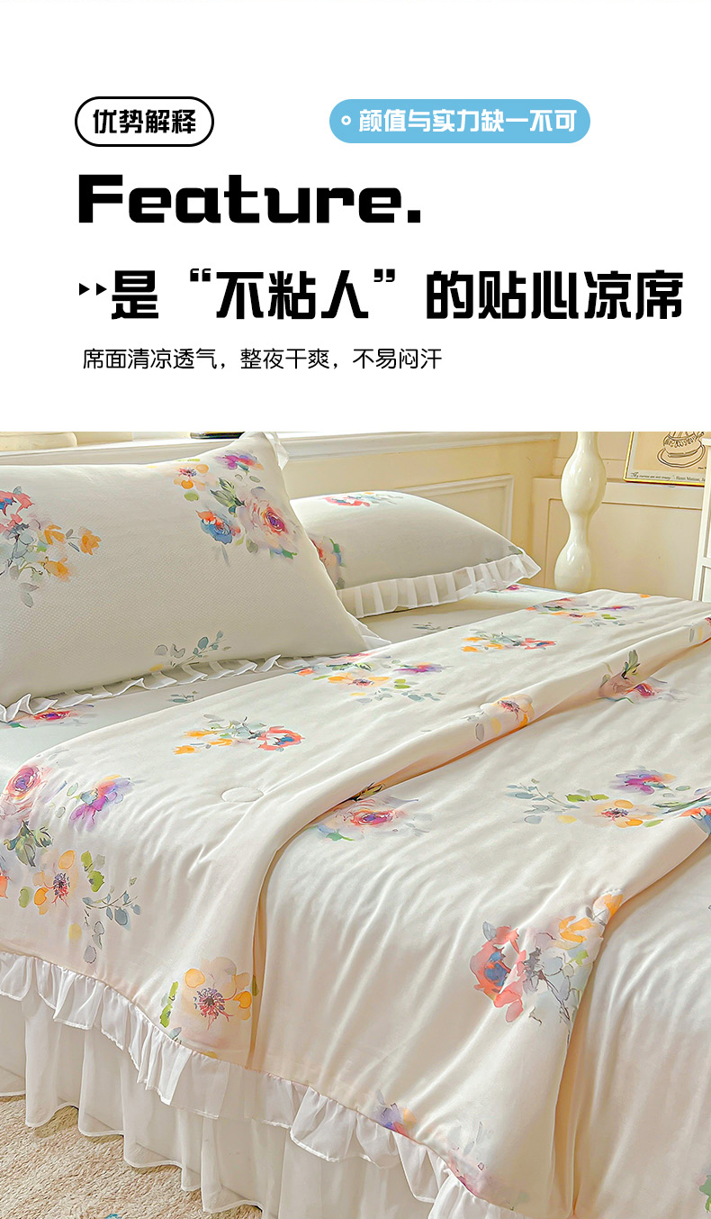 当前位置: 91家纺网 > 商品网购 > 床品套件 > 四件套 > 夏被四件套 > 栩裕纺织 2026新款(常年不断货)A类凉感丝床裙款凉席夏被四件套花边空调被三件套 轻素