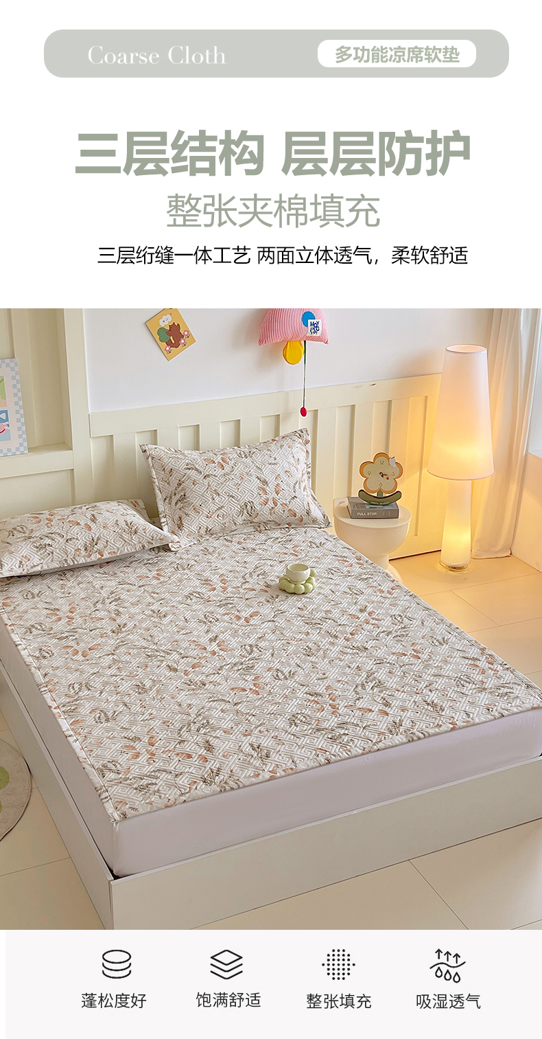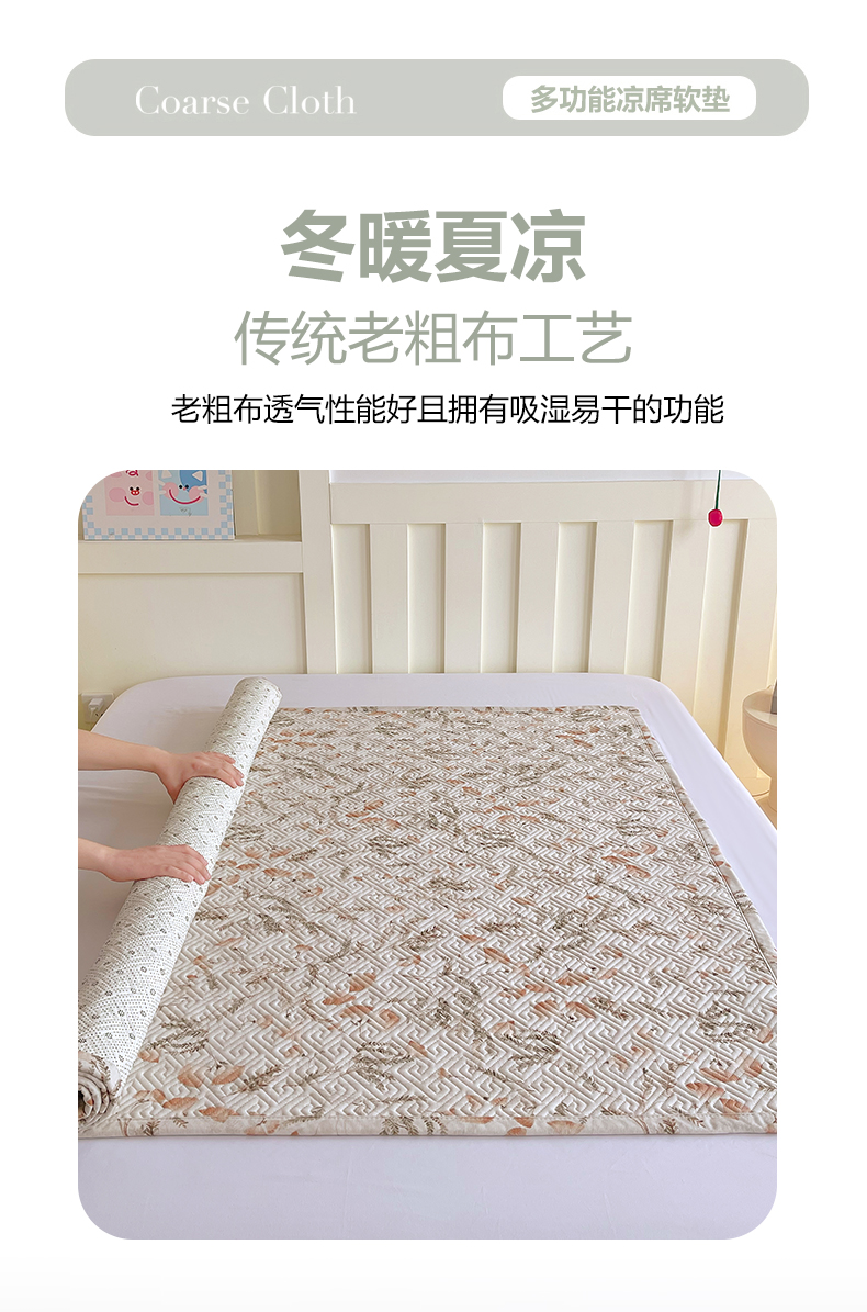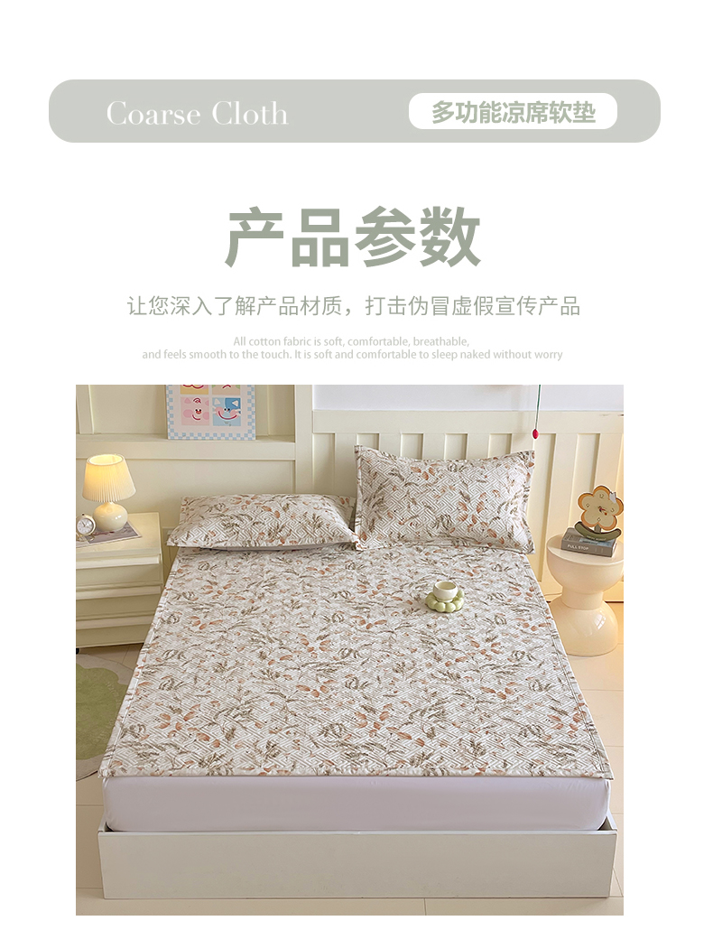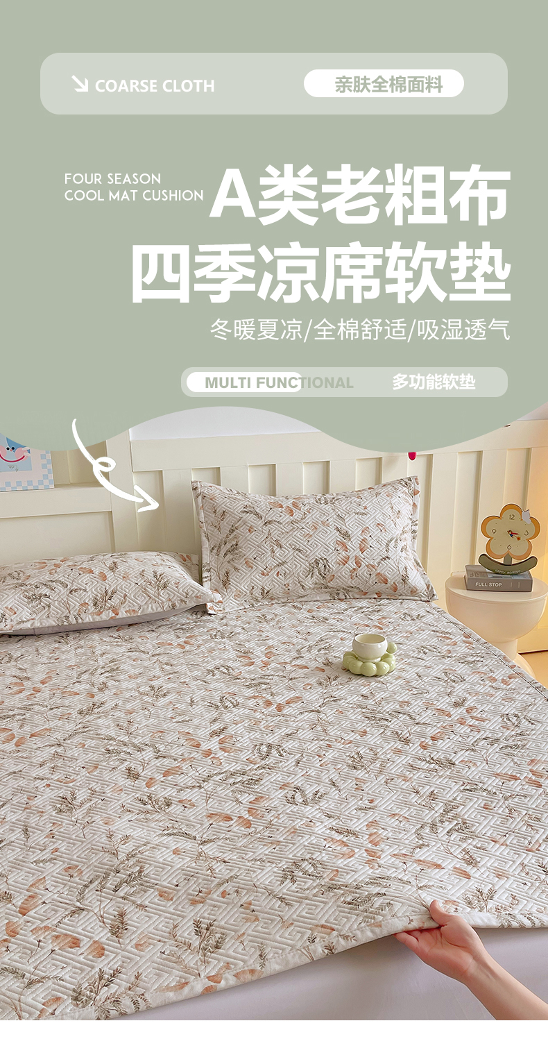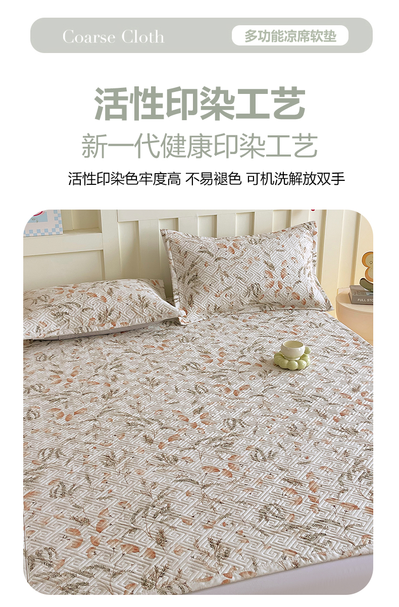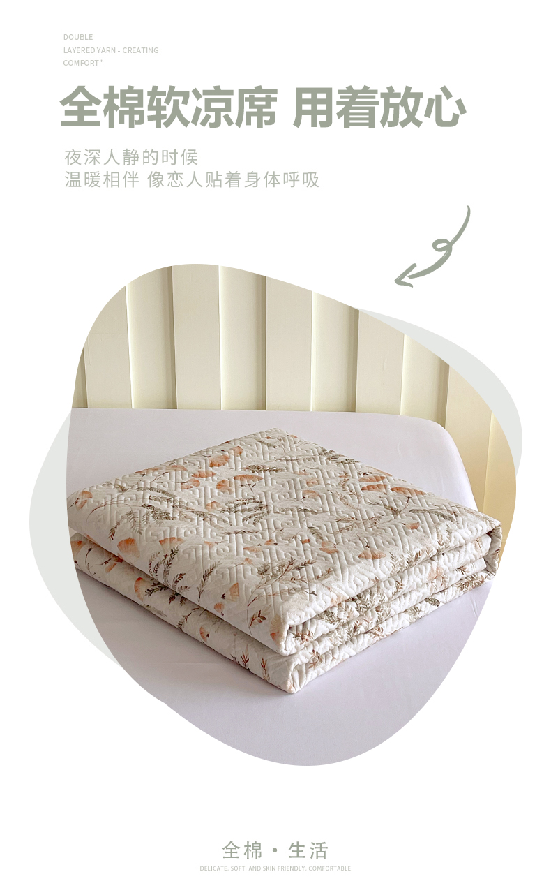 当前位置: 91家纺网 > 商品网购 > 床上用品 > 凉席 > 其他凉席 > 金鑫汇家纺 2026春夏新款成人床新花型老粗布夹棉床盖软凉席席子可以机洗 月下花影·桔