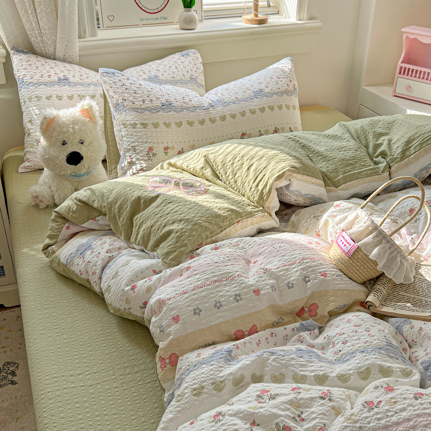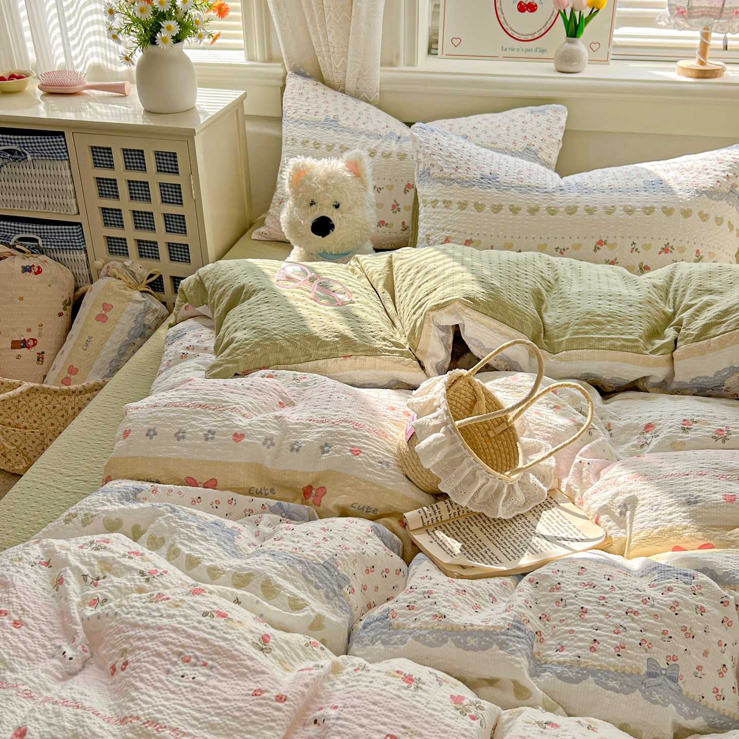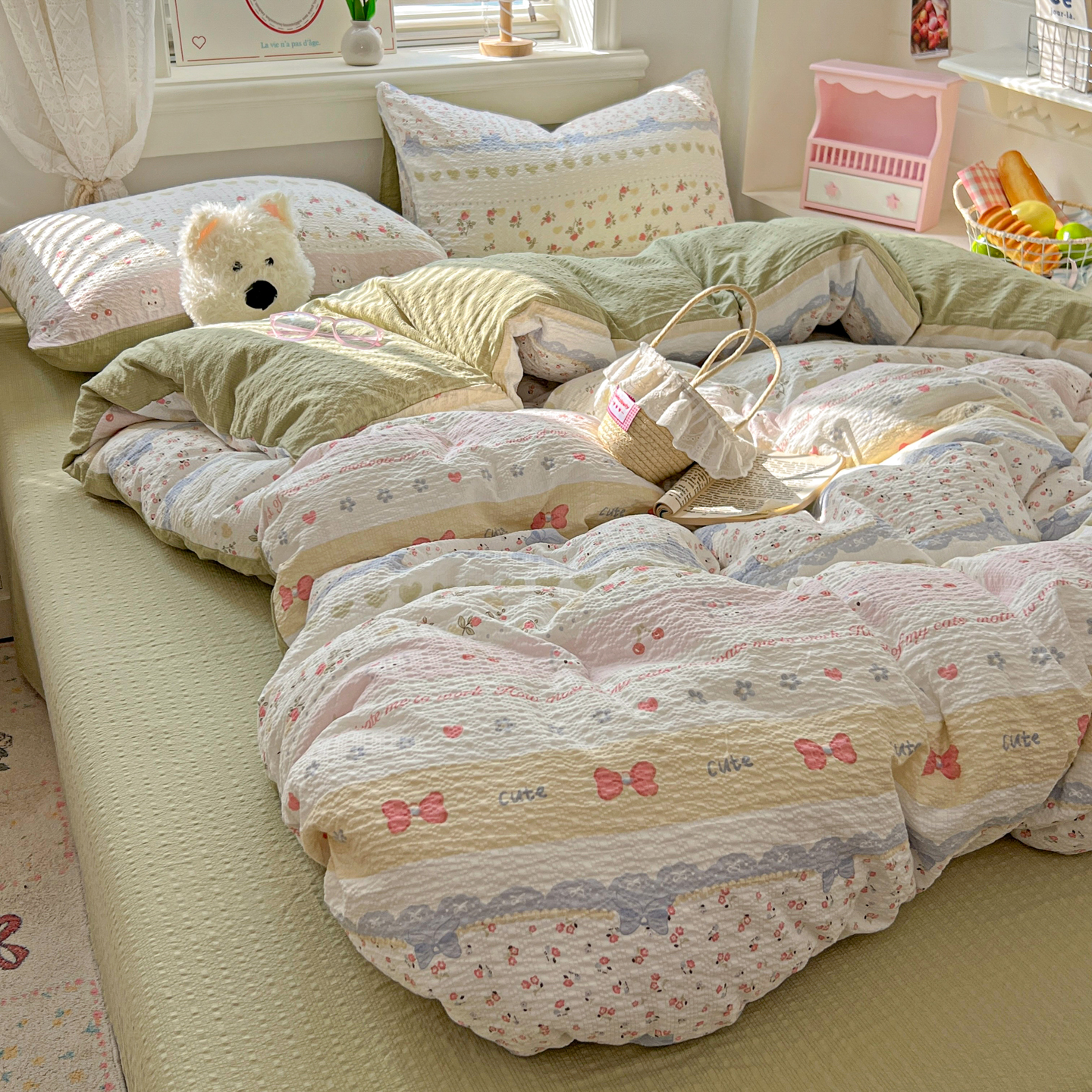 暖伊家居 2026新款糖果小布袋泡芙纱四件套 栀夏来信
