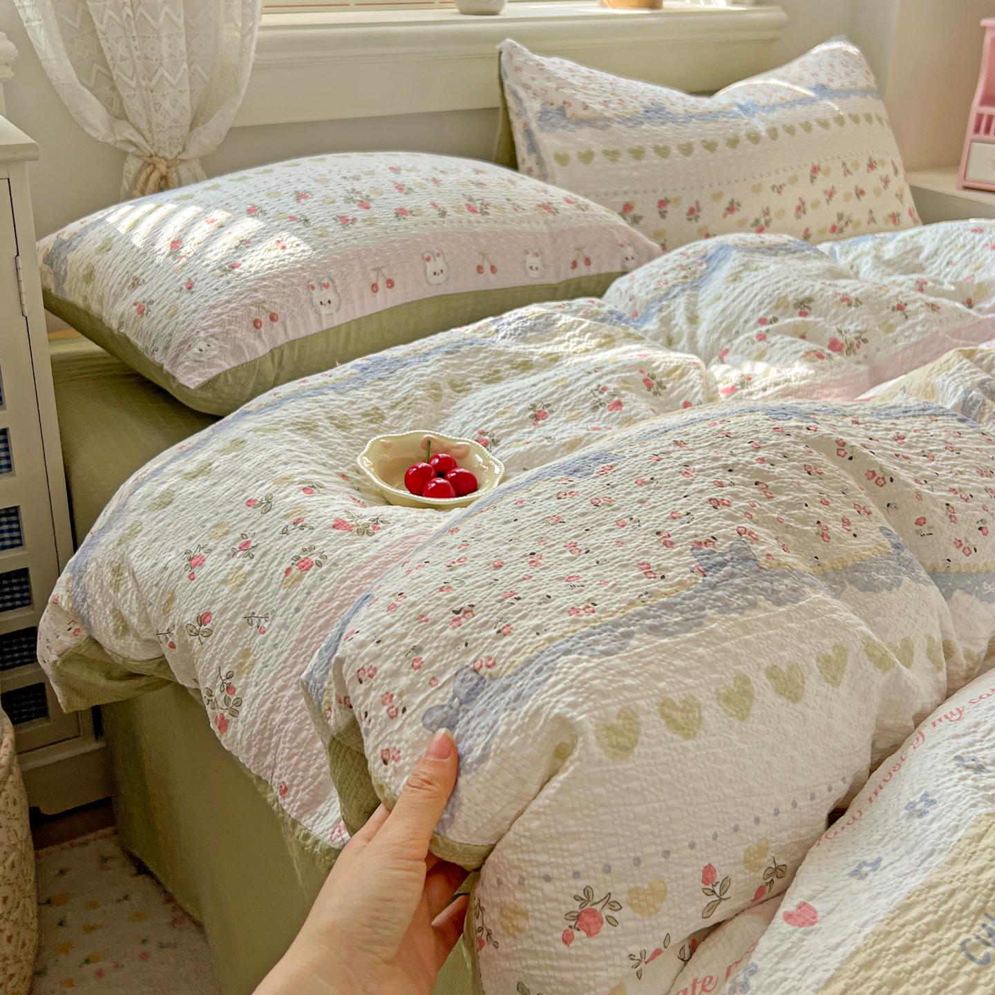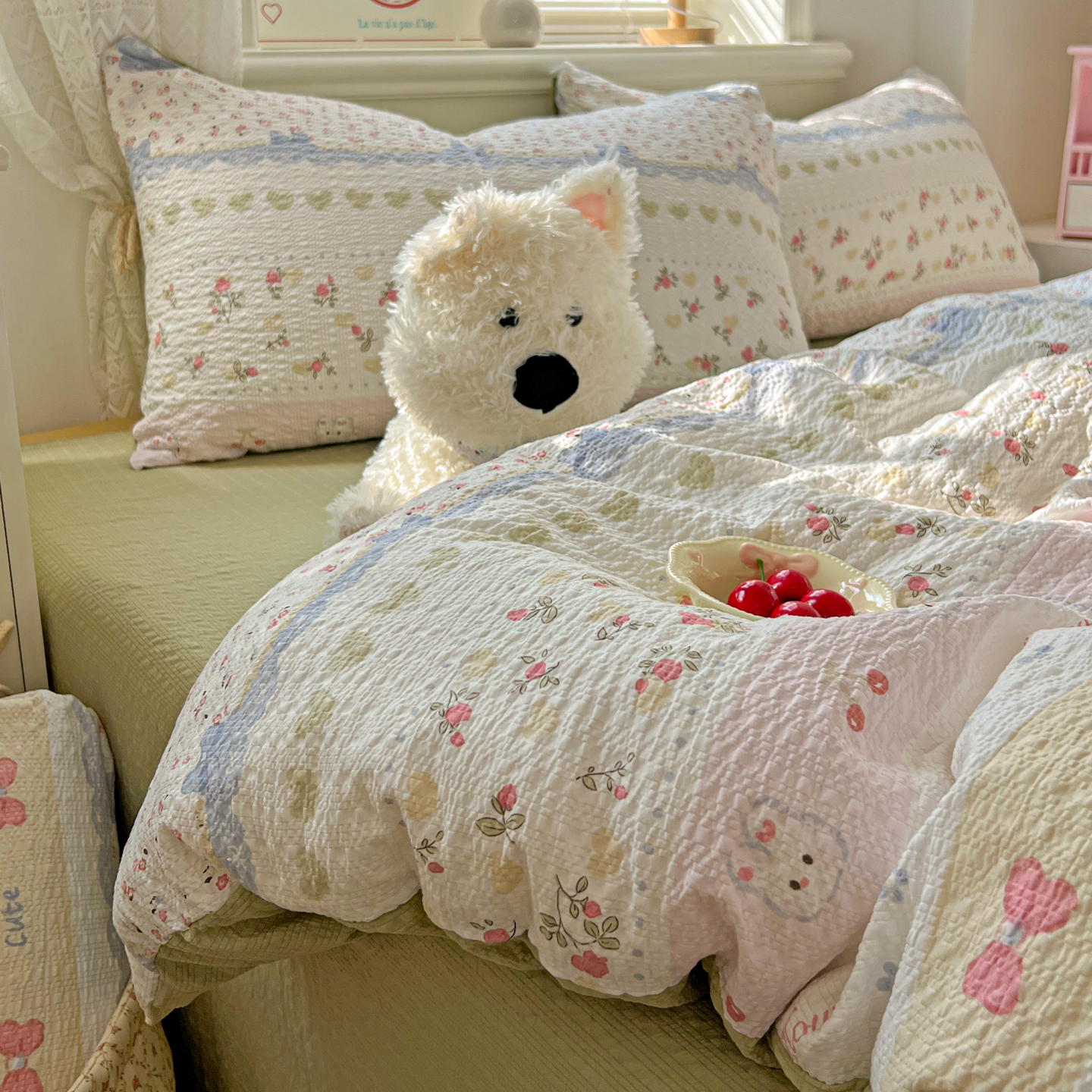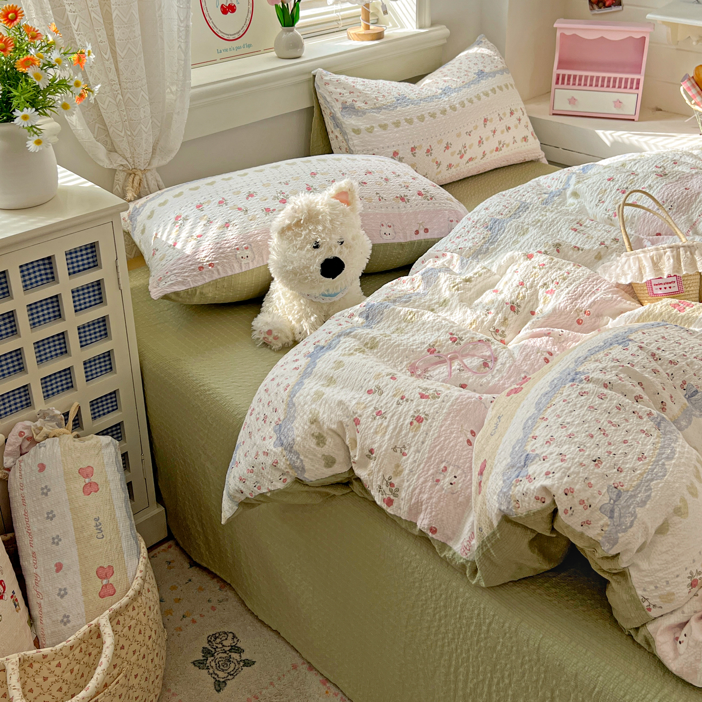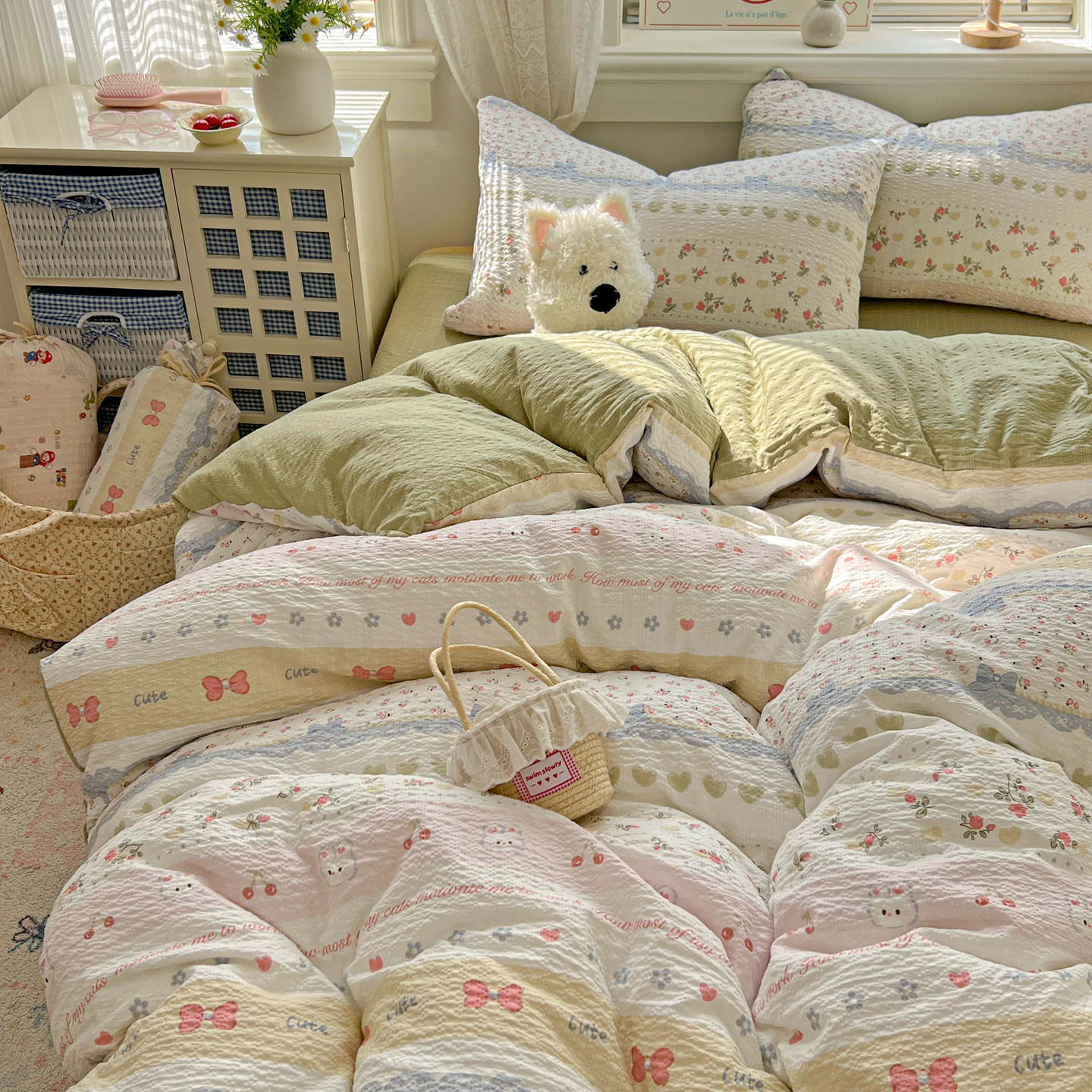 暖伊家居 2026新款糖果小布袋泡芙纱四件套 栀夏来信