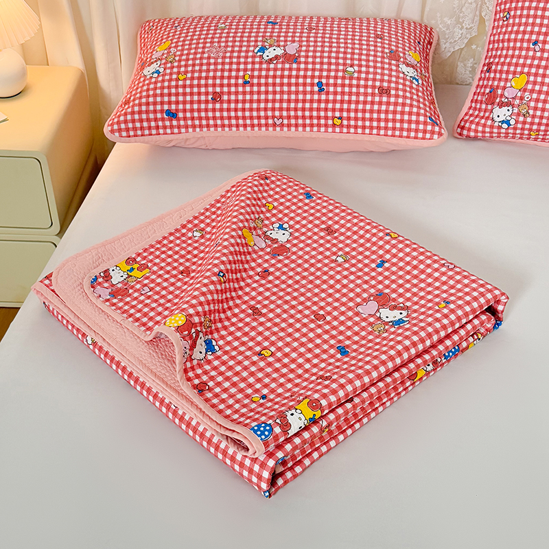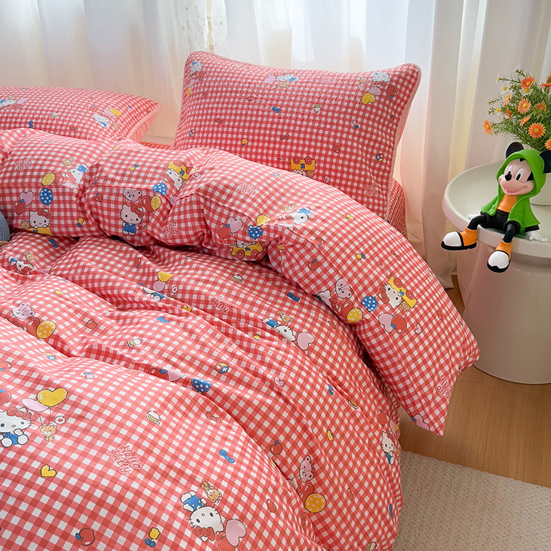 (总)淑女公社家纺 2026新款高温砂洗纯棉床盖款正版三丽鸥KT猫四件套床盖被套单件单品,爱美KT,红格KT,甜心KT,小熊KT,樱桃KT,组合图仅供参考不可下单