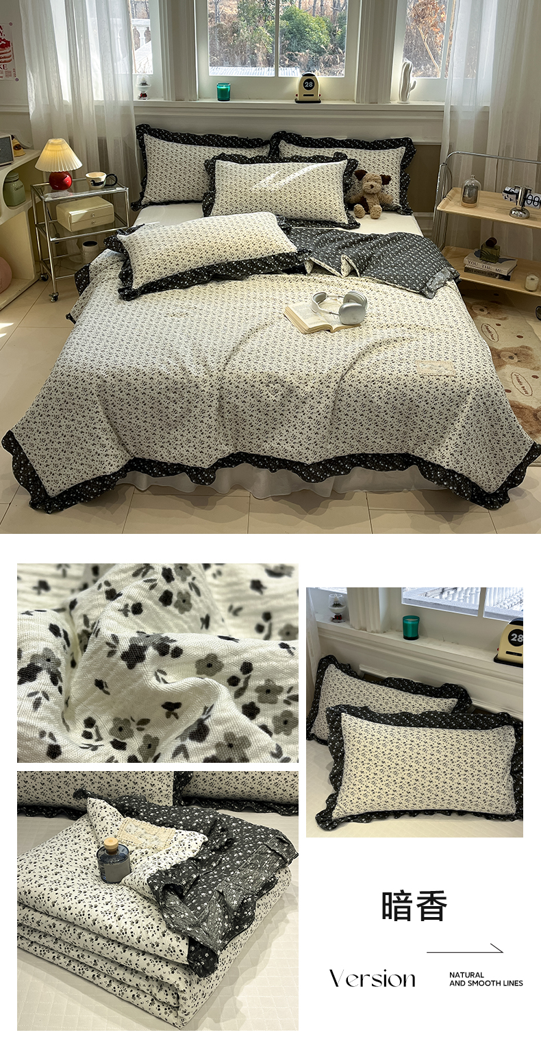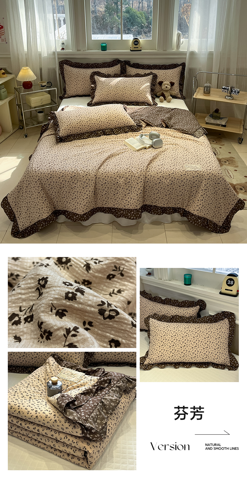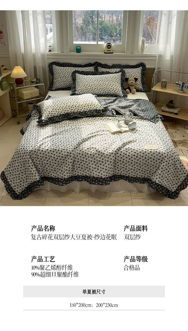 (总)一加一 2026新款复古碎花双层纱大豆夏被夏凉被空调被-纱边花眠,暗香,芬芳,花团锦簇,盛夏,叶影,绽放