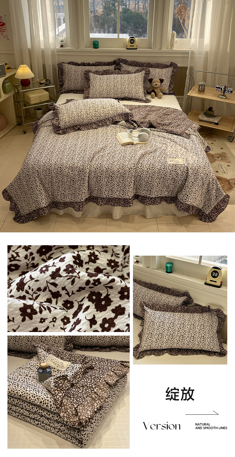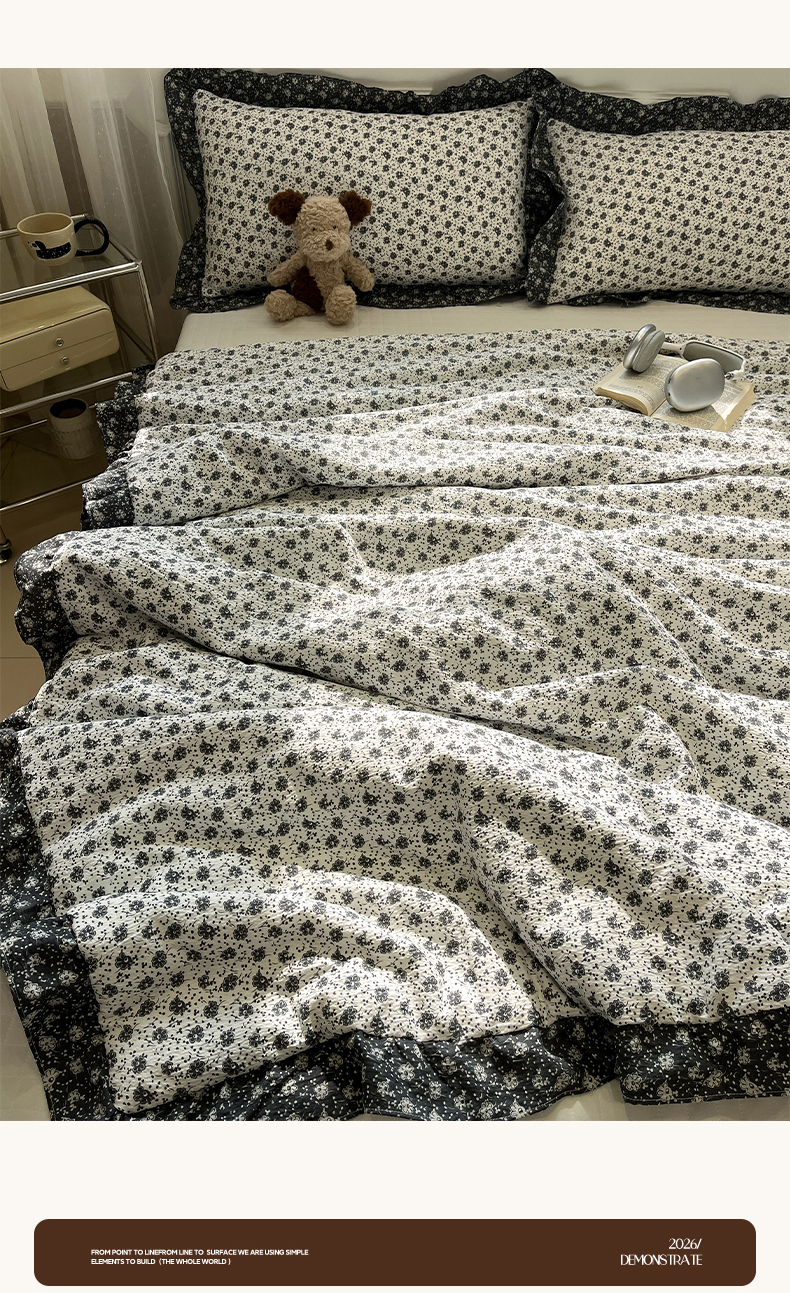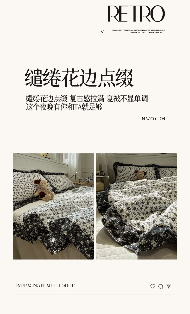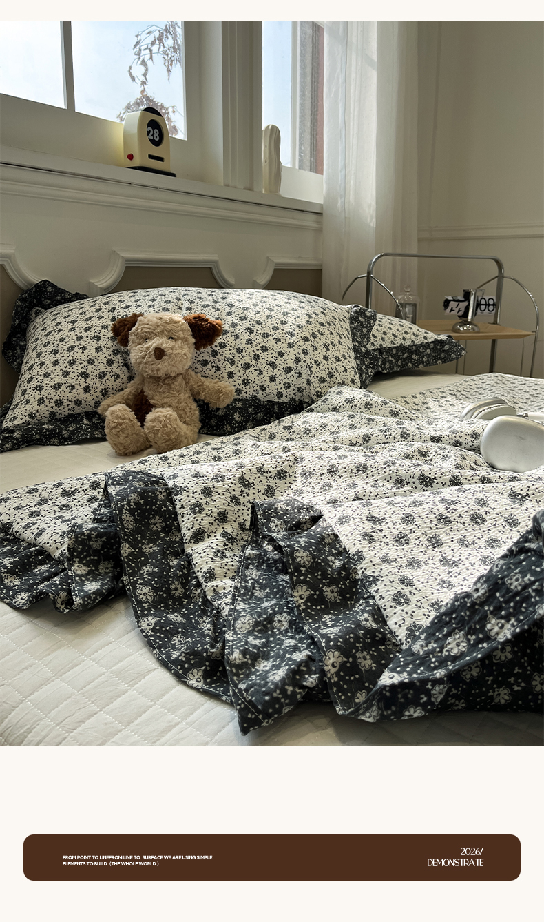 (总)一加一 2026新款复古碎花双层纱大豆夏被夏凉被空调被-纱边花眠,暗香,芬芳,花团锦簇,盛夏,叶影,绽放
