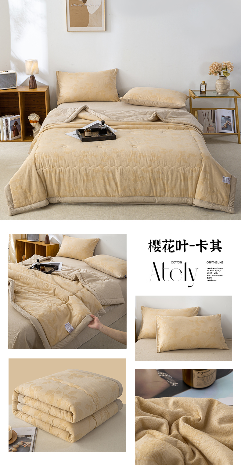 • 91家纺网 家纺一手货源 找家纺 恋人优选 2026新款樱花叶全棉提花夏被空调被 樱花叶-兰