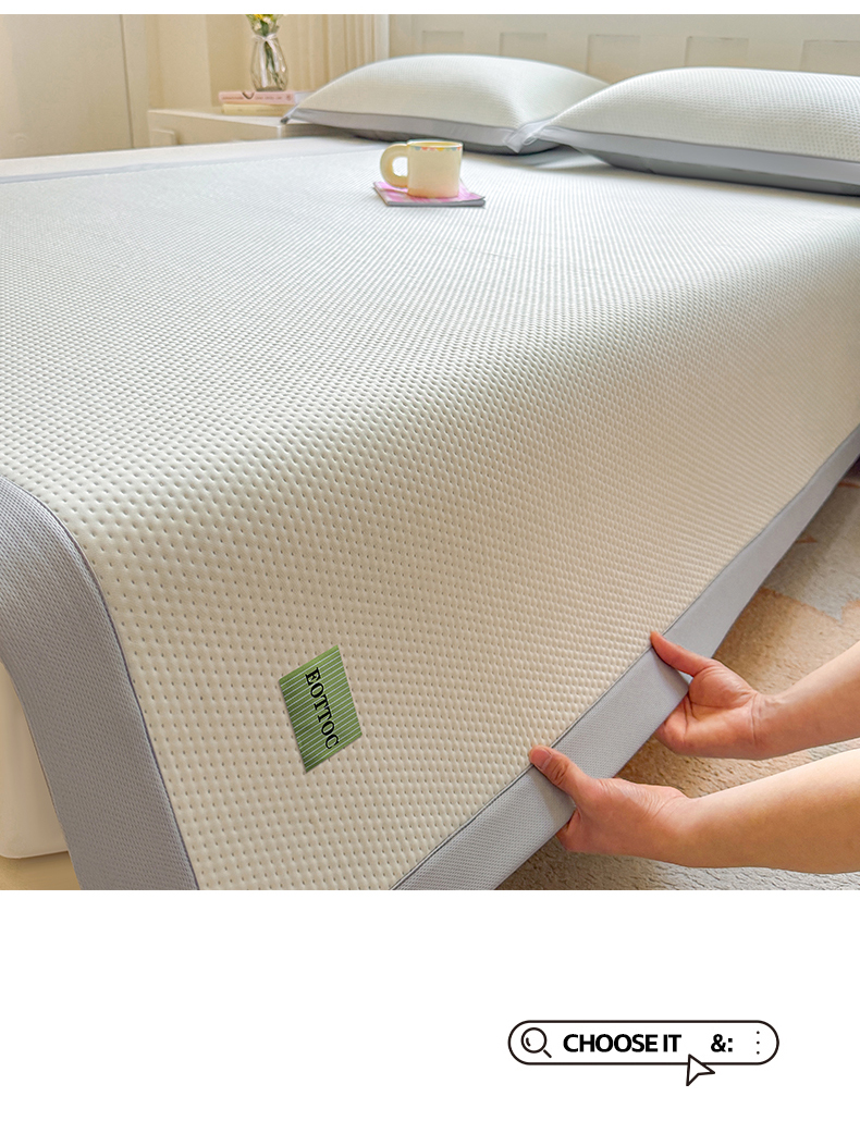 (总)雯豆家纺 2026春夏新款碳光冰丝席子三件套加厚三明治冰丝软席平铺席凉席席子,千鸟格-绑带款-海星蓝,千鸟格-绑带款-千禧粉,千鸟格-绑带款-松石绿,千鸟格-绑带款-香槟金,千鸟格-绑带款-银帆灰,组合图仅供展示不可下单