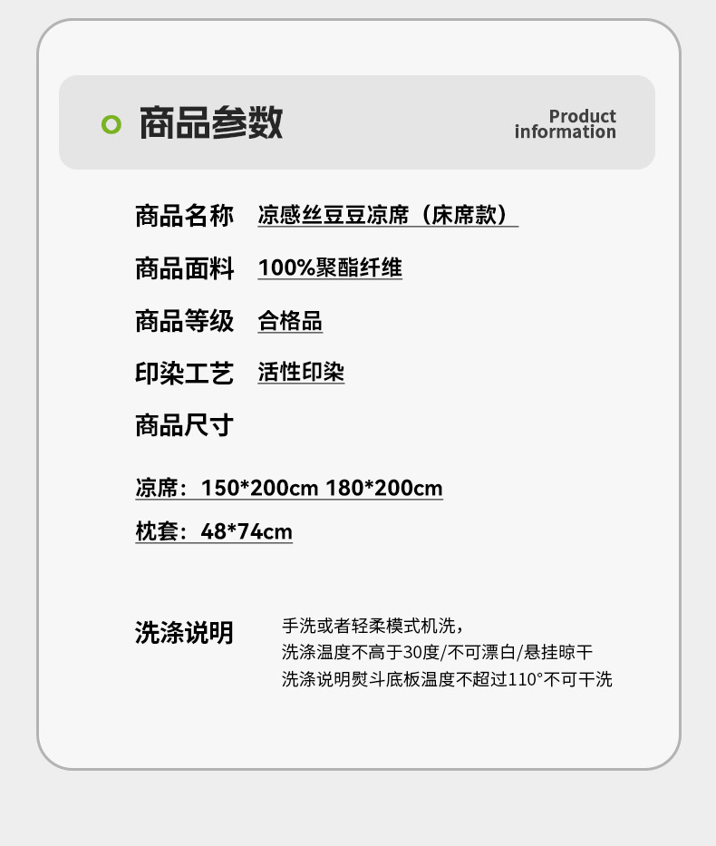 150x200cm单凉席+枕套一对